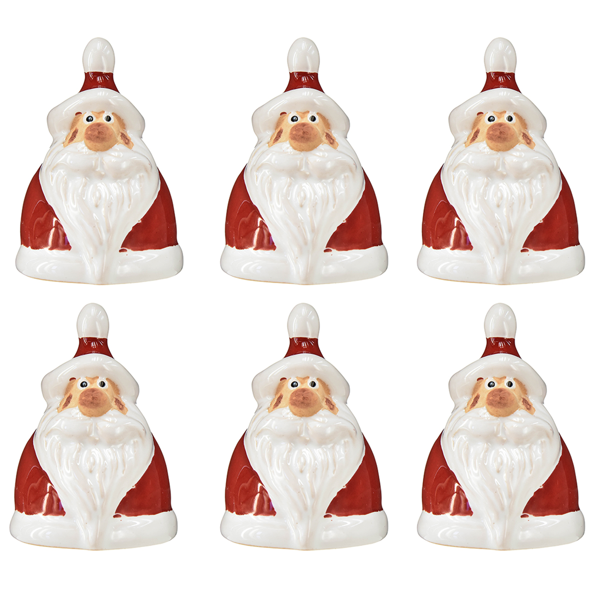 Keramik Weihnachtsmann Figur, Rot-Weiß, 6,4cm – Festliche Weihnachtsdeko – 6 St