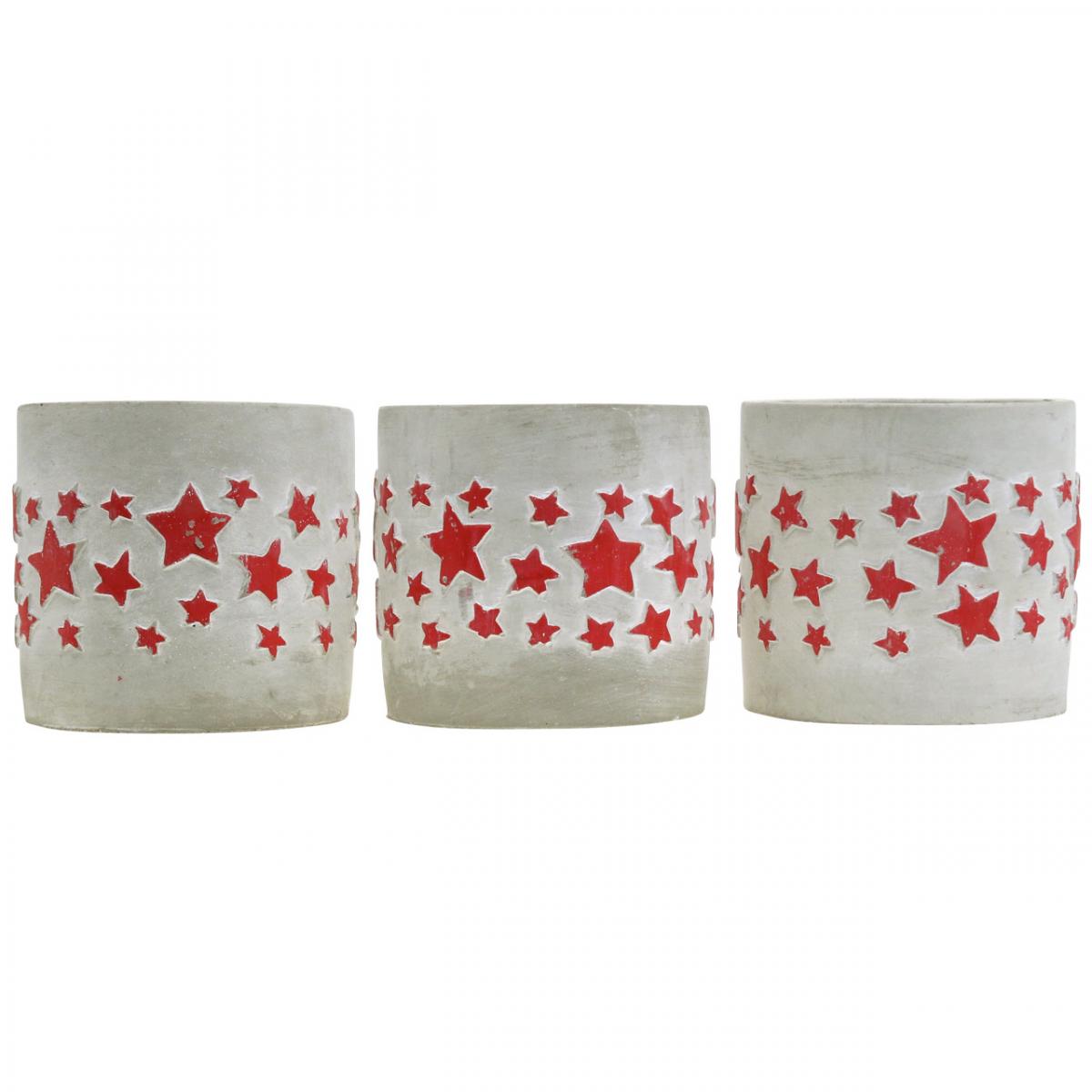 Keramikdeko Sternmuster, Pflanzgefäß, Beton-Optik, Adventsdeko Ø10,5cm H9,5cm 3St