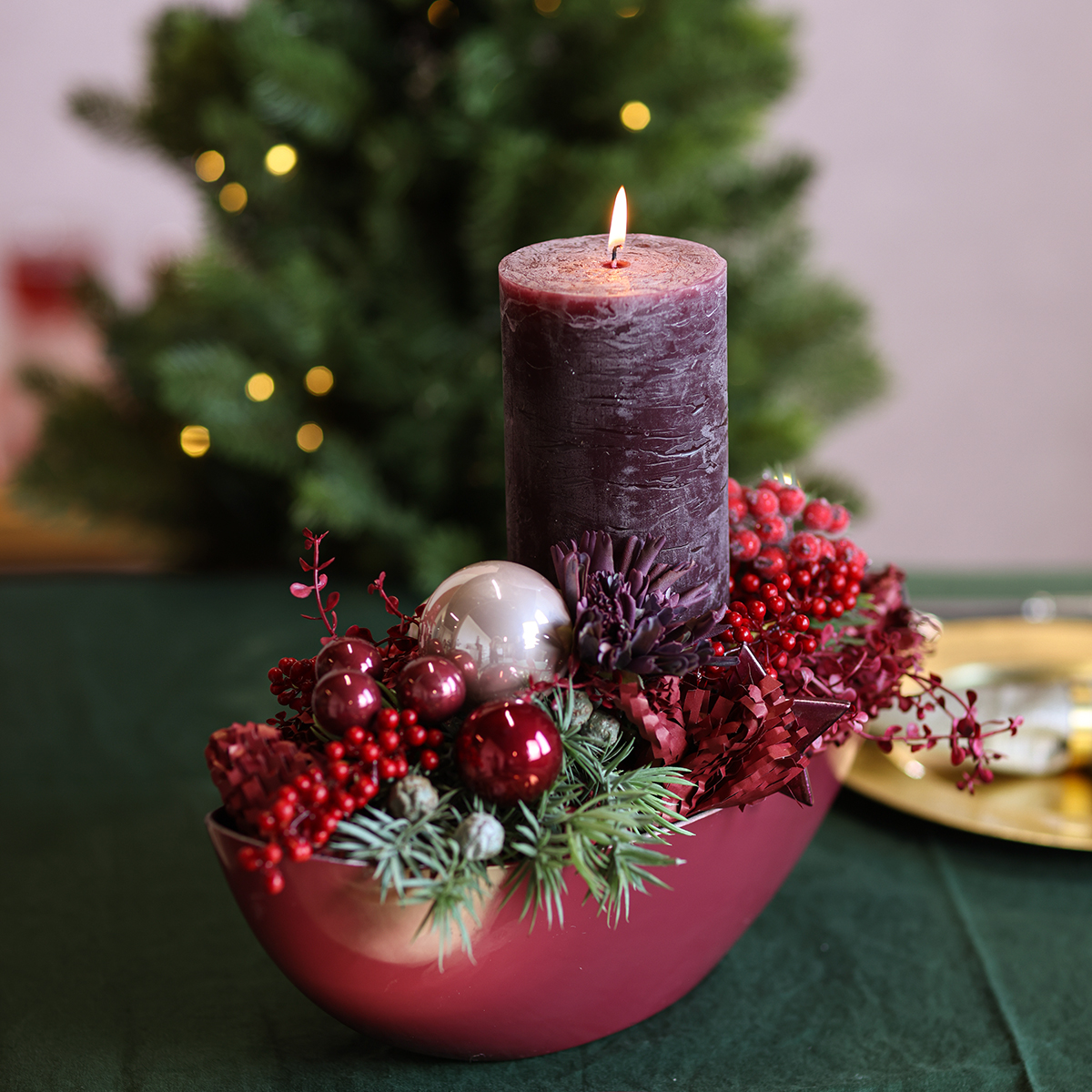 Entdecken Sie den Zauber der Eleganz mit unseren Stumpenkerzen in Burgund