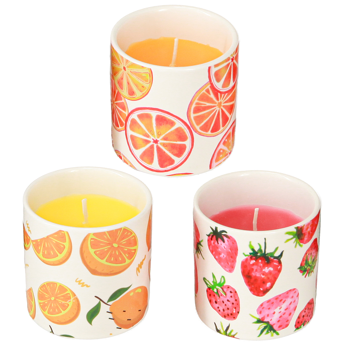 Erleben Sie sorglose Sommerabende mit diesen ansprechenden drei Citronella-Kerzen, die in dekorativen Keramiktöpfen daherkommen. Diese stilvollen Kerzen für outdoor von Balkon bis Garten vereinen praktischen Insektenschutz mit drei einladenden Duftnoten, die Harmonie in Ihren Außenbereich bringen. Die Kerzen erhalten Sie in den fruchtigen Duftsorten Zitrone, Orange und Erdbeere. Sie verbreiten mit ihrem angenehmen Duft ein frisch-sommerliches Ambiente. Die handlichen Keramiktöpfe in Weiß, verziert mit Abbildungen von Zitronen, Orangen und Erdbeeren, machen sie zu einem dekorativen Highlight für Sommerdeko und Tischdeko im Freien. Mit einer Brenndauer von bis zu 9 Stunden bieten die Gartenkerzen gegen Mücken zuverlässigen Schutz und wehren lästige Insekten während Gartenpartys und Grillabenden ab. Diese dekorativen Citronella Kerzen sind das perfekte Accessoire, um sommerliche Abende unter freiem Himmel in vollen Zügen zu genießen.