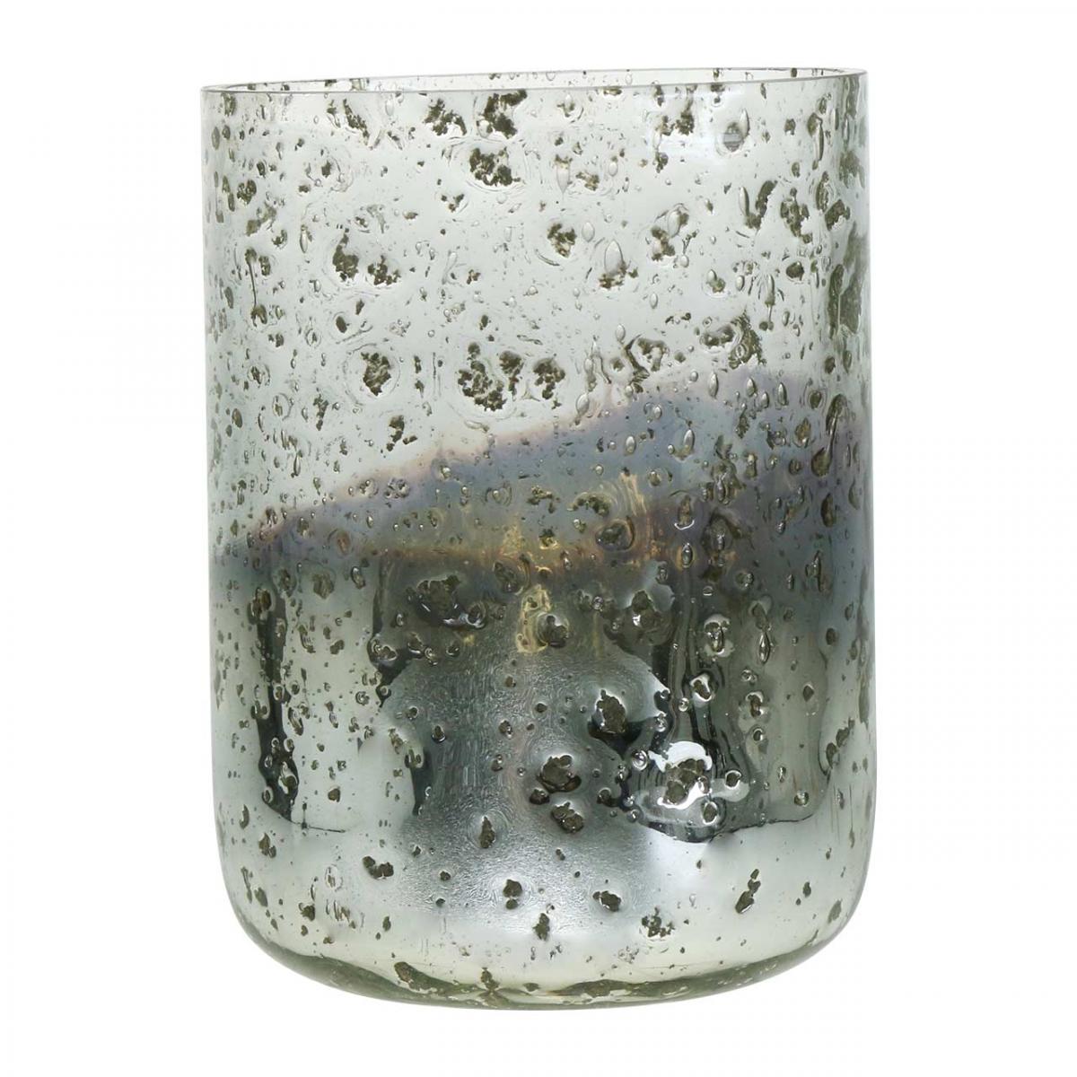 Kerzenglas zweifarbig Glasvase Windlicht Klar, Silber H14cm Ø10cm