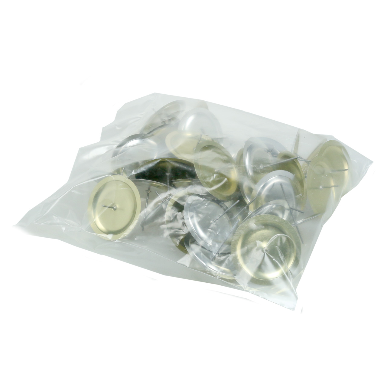 Die Kerzenhalter mit Dorn in Gold werden in einem Beutel zu insgesamt 36 Stück geliefert. Insgesamt haben Sie eine Höhe von circa 6 Zentimetern und einen Durchmesser von etwa 6 Zentimetern. Der Kerzendorn hat eine Länge von ungefähr 2 Zentimetern und der Steckdorn eine von circa 4 Zentimetern.