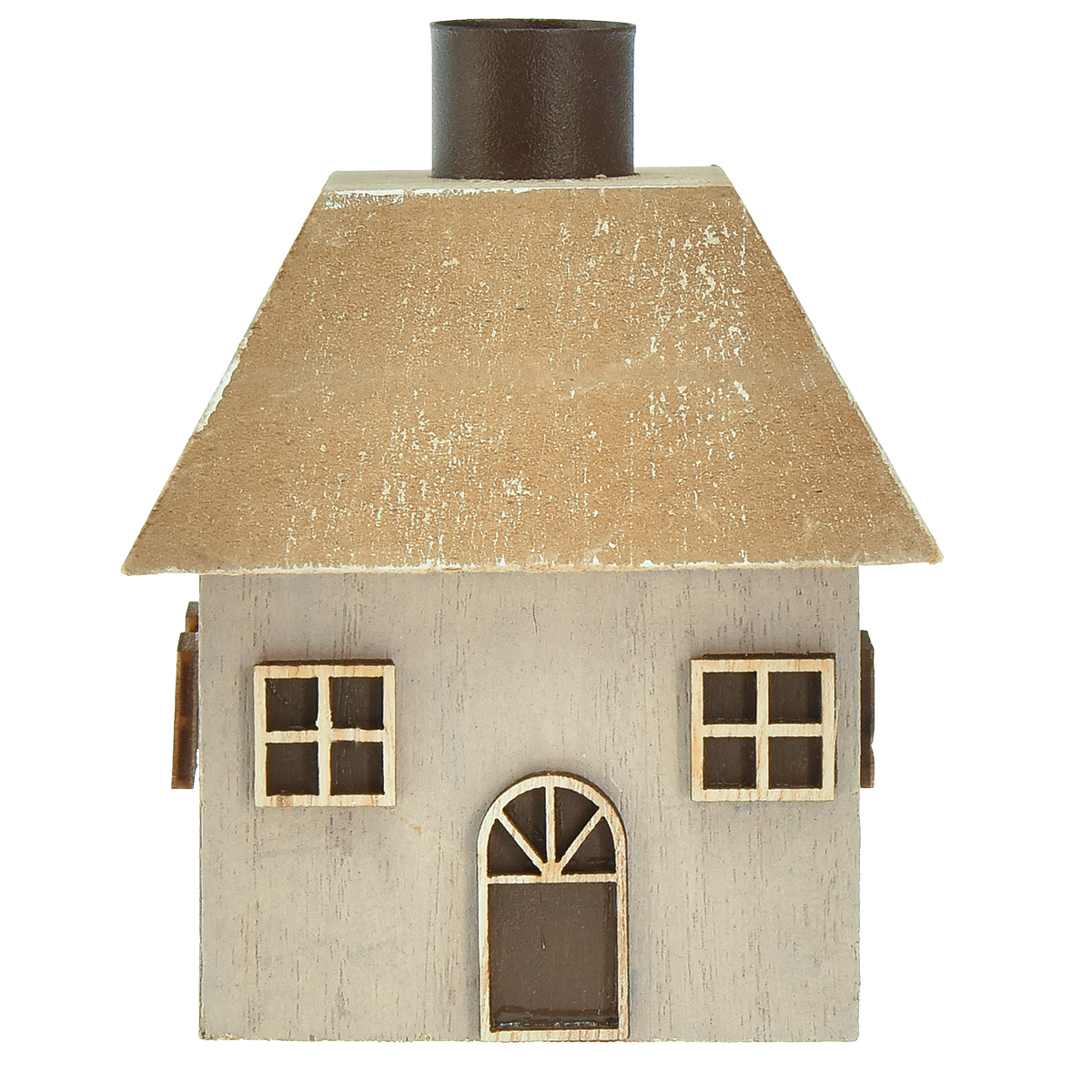 Kerzenhalter Weihnachten Haus Holz Grau 9×9×11cm 2 St