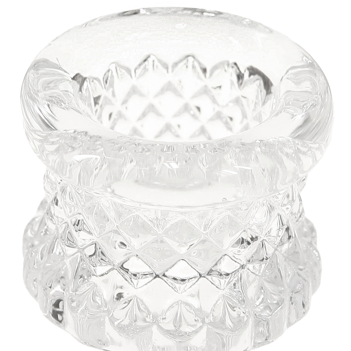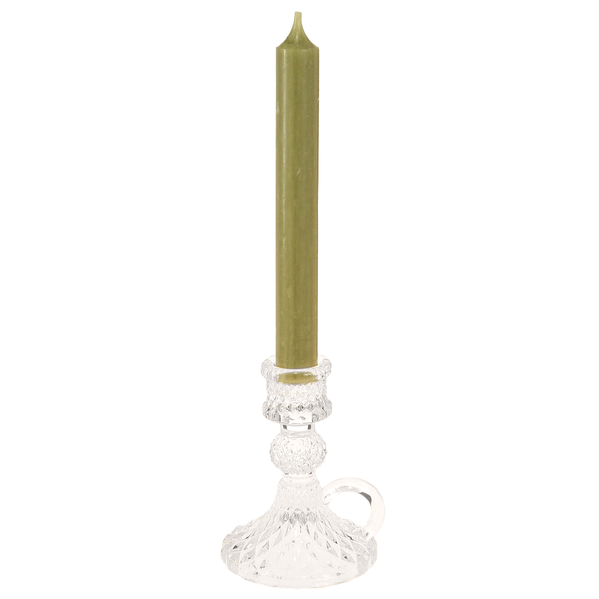 Entdecken Sie die perfekte Mischung aus Funktionalität und Ästhetik mit unserem gläsernen Kerzenhalter mit Henkel, speziell für Stabkerzen designt. Das klare Glas mit den Rhomben und wie geschliffenen Effekten verleiht jedem Raum eine besondere Eleganz. Dieser Vintage-Glas-Kerzenhalter ist mehr als nur ein dekorativer Akzent – er ist eine Einladung zu stimmungsvollen Abenden und schafft eine behagliche Atmosphäre in Ihrem Zuhause.