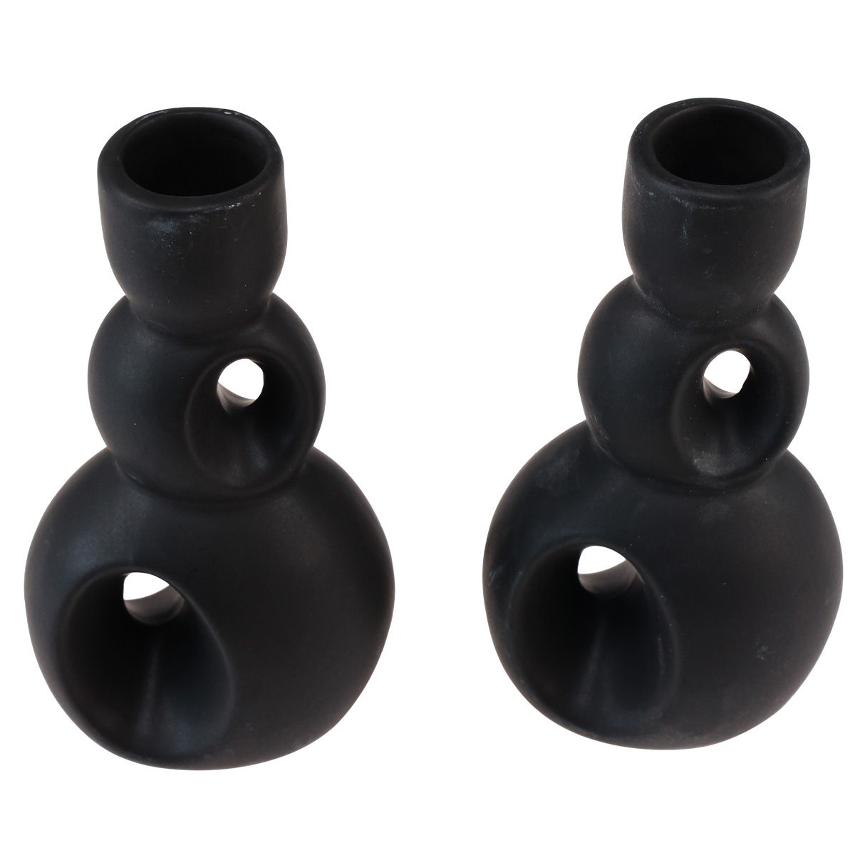 Kerzenhalter Keramik Kerzenständer Schwarz Modern H16cm 2St