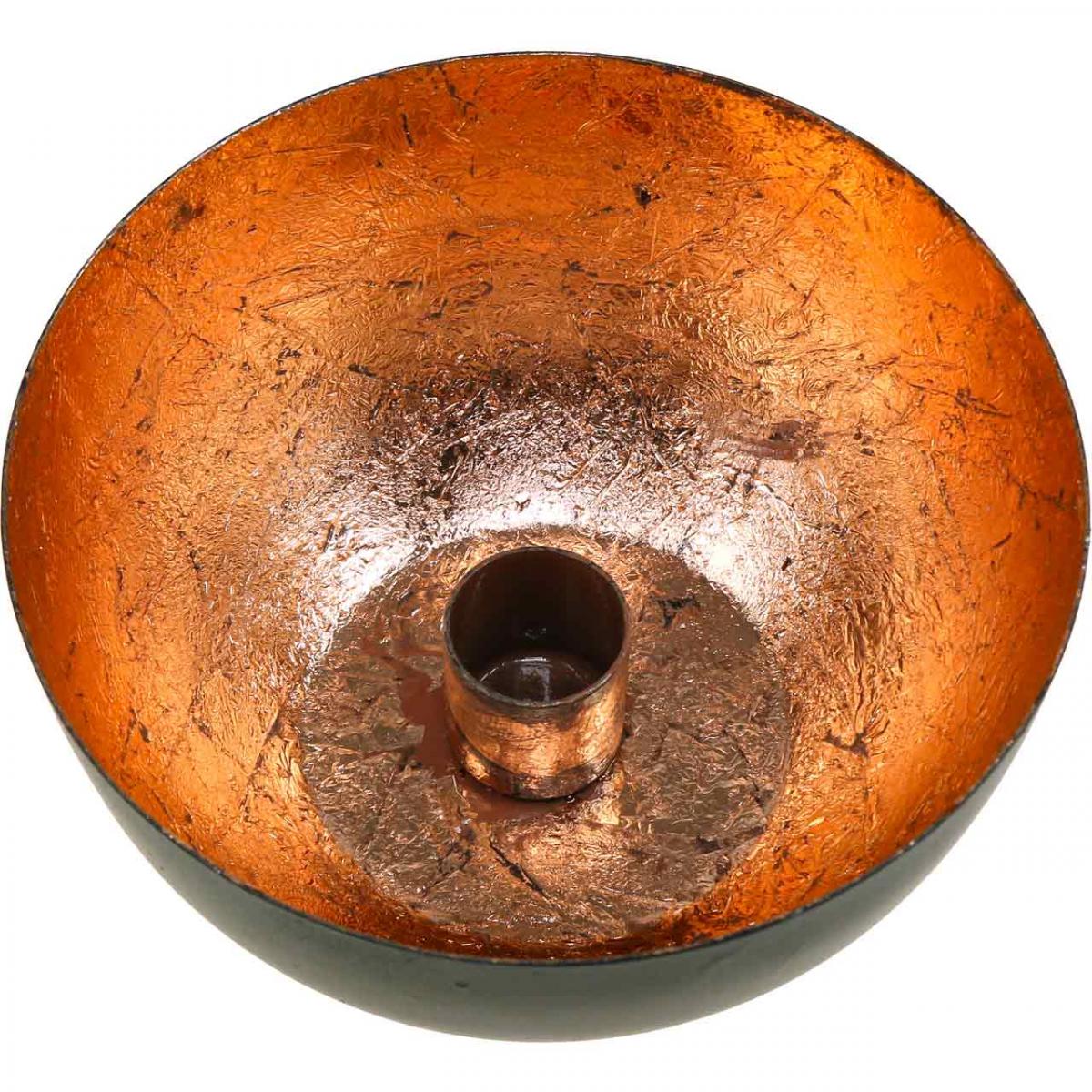 In der Beschichtung im leuchtenden Metallic-Ton Bronze sind zudem feine Verästelungen erkennbar, die der Schale noch mehr Charakter verleihen. Der Kerzenhalter selbst eignet sich für alle gängigen Stabkerzen.