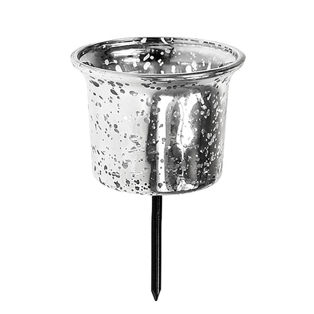 Der Kerzenhalter für ein Teelicht in Silber hat zusammen mit dem Dorn eine Höhe von etwa 10 Zentimetern, während der Behälter einen Durchmesser von circa 6 Zentimetern besitzt. Somit passt die tolle Lichterdeko wunderbar in jedes Gesteck, jeden Tischkranz und kleinen Blumentopf. Lassen Sie die tollen Lichtspiele auf Ihrer Gartenparty, beim Abendessen oder beim gemütlichen Couchabend eine schöne Atmosphäre verbreiten!