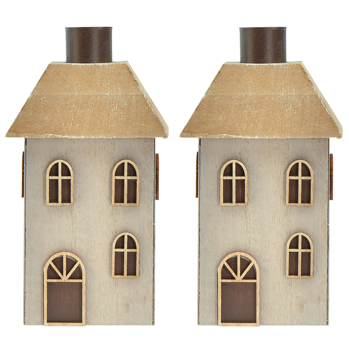 - Schön furniertes MDF-Holzmaterial in edlem Grauton und beigem Dach als stilvolle Adventsdeko
