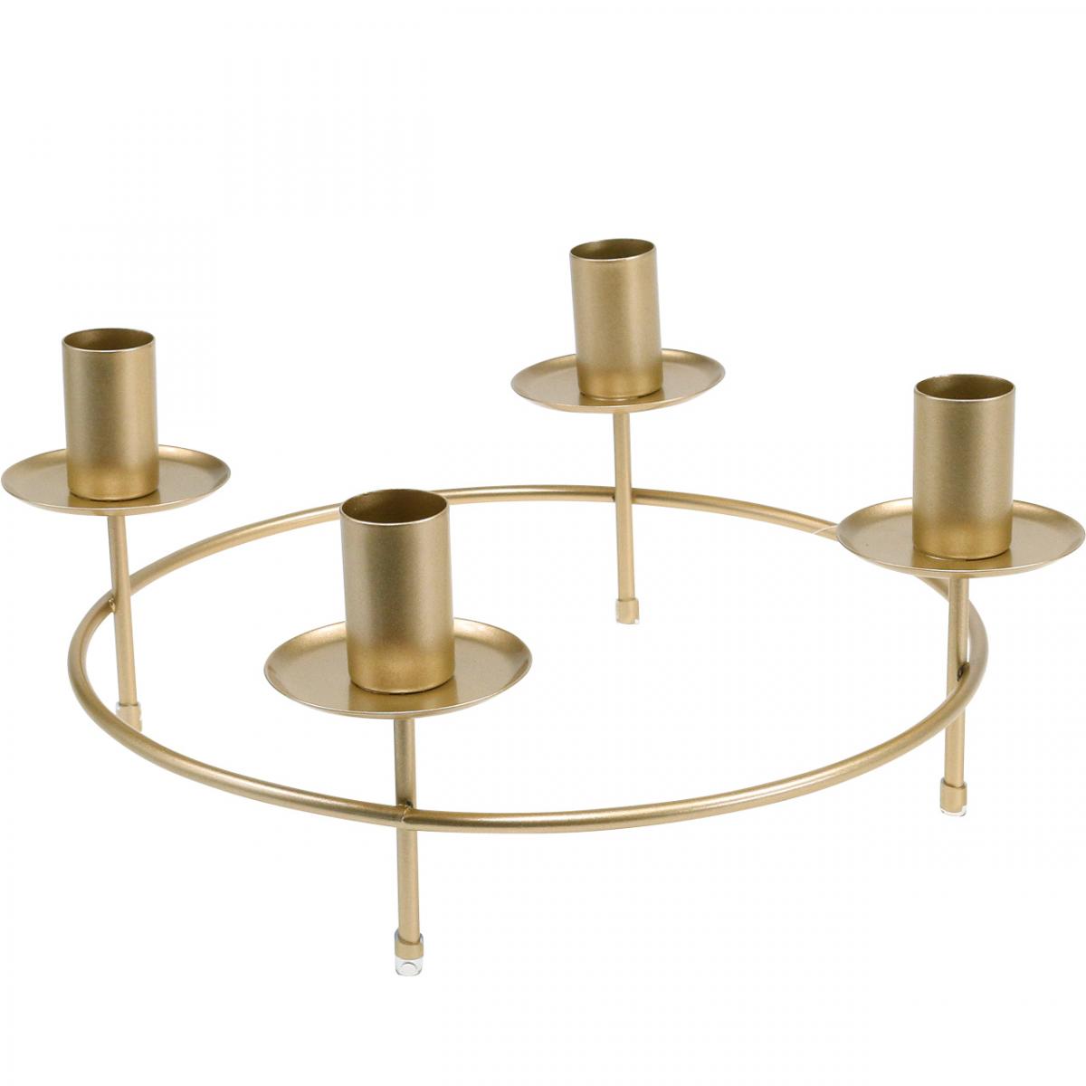 Kerzenring Stabkerzen Kerzenhalter Gold Ø28cm H11cm 2St