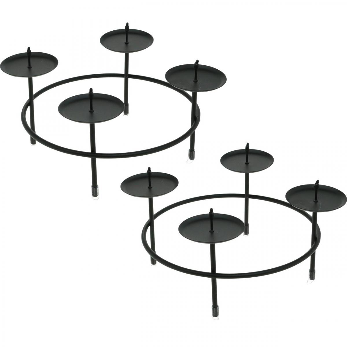 Kerzenständer für 4 Kerzen Schwarz Metall Adventskranz Ø18,5cm 2St