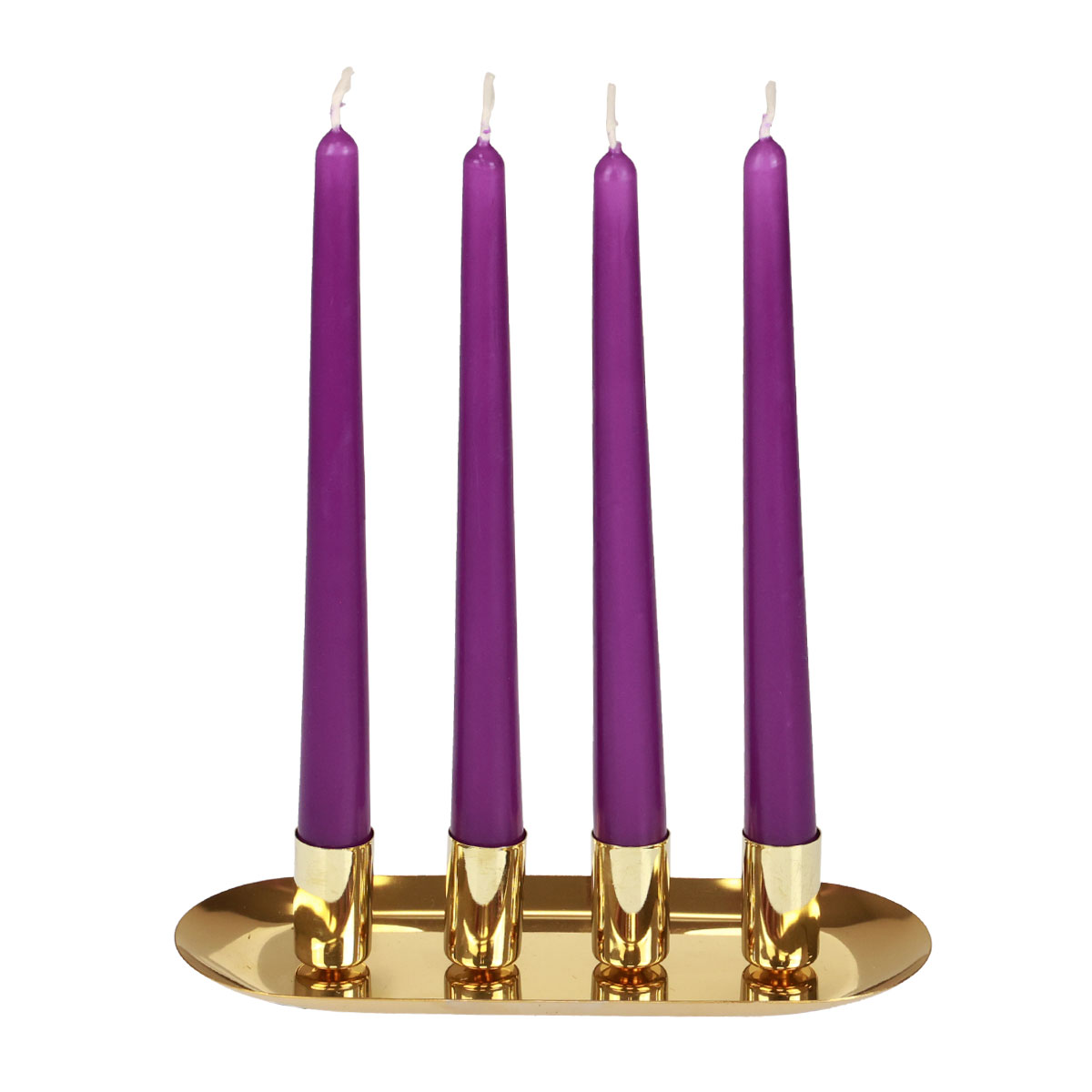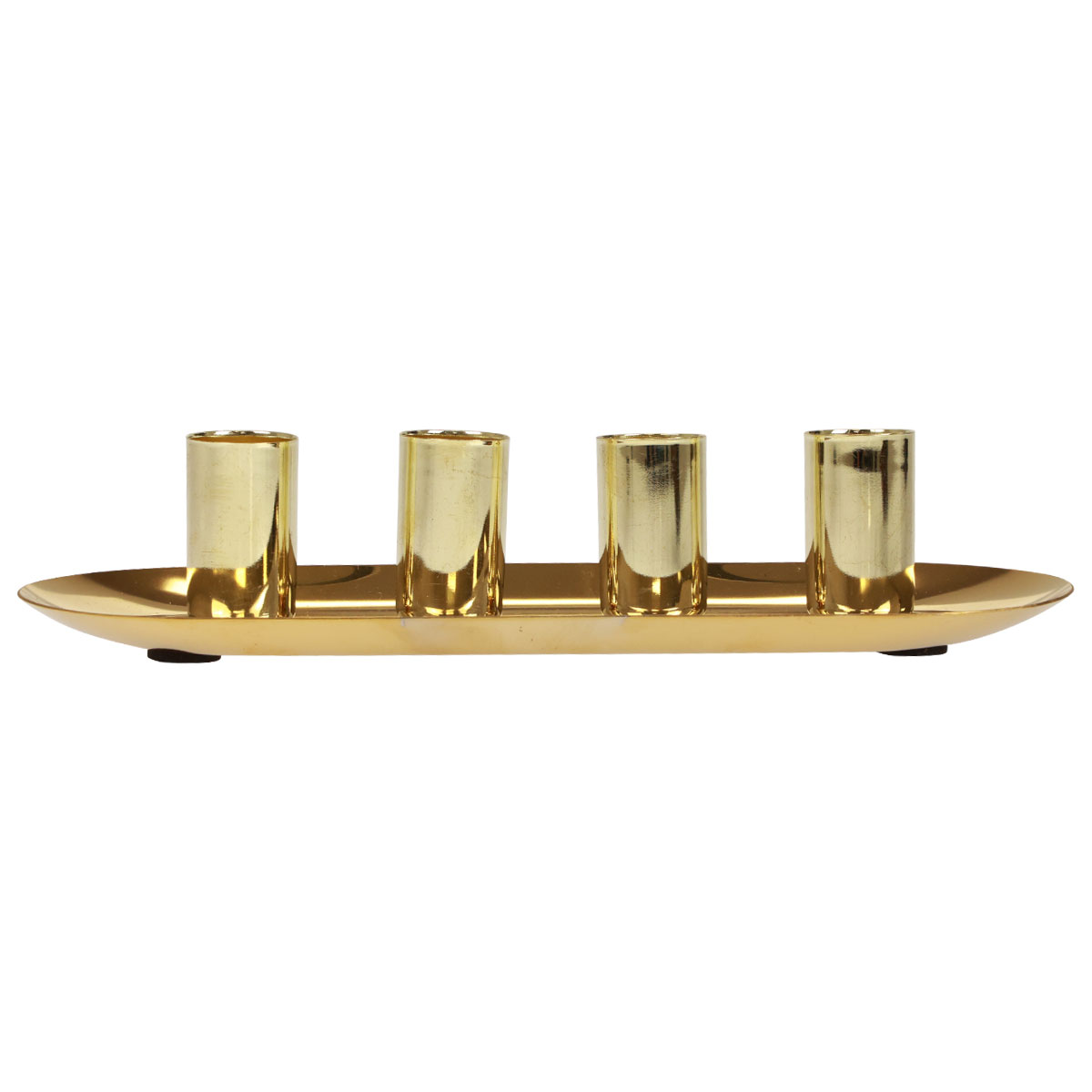 Golden glänzt der Kerzenteller aus Metall mit den vier aufgesetzten Stabkerzenhaltern. Perfekt für den Advent!