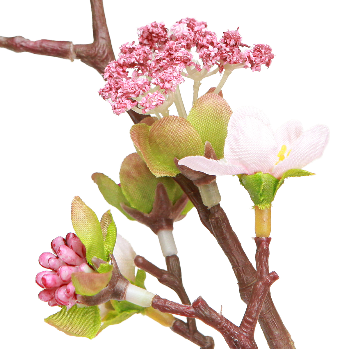 Insgesamt ist der Kirschblütenzweig in Rosa etwa 95 Zentimeter lang. Der Durchmesser der einzelnen Blüten variiert ungefähr zwischen 2 und 4,5 Zentimetern.