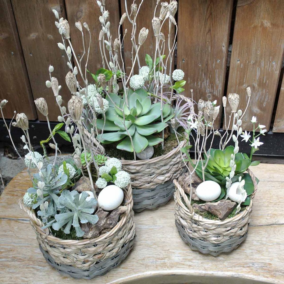 Verwendungszweck: Dekorative Korbwaren und Pflanzkörbe für Floristik, Dekoration und zur Aufbewahrung.