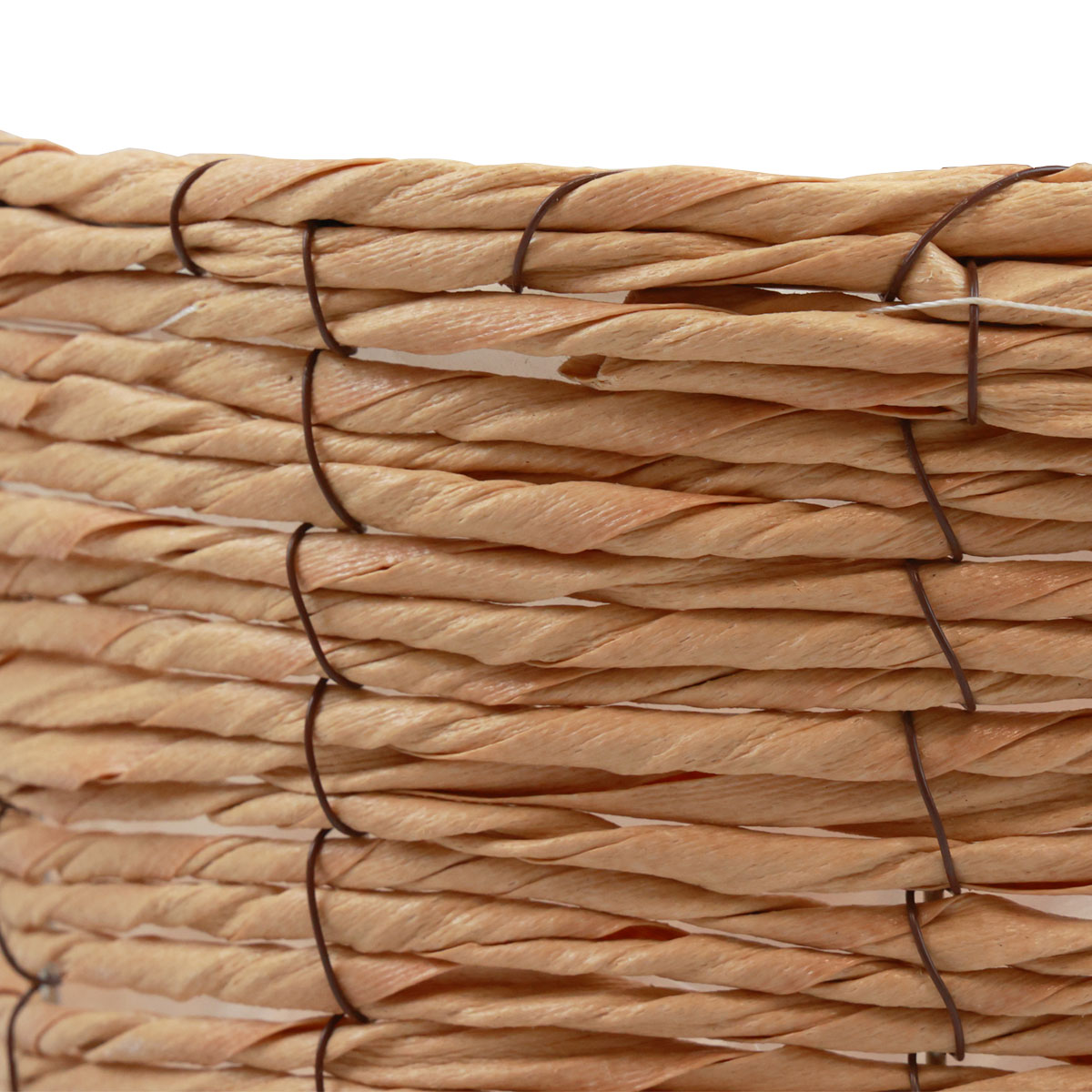 Das Pflanzgefäß besticht durch seine natürliche Optik in einer warmen, hellbraunen Farbe. Das künstliche geflochtene Seegras wird von braunem Draht zusammengehalten. Die Stabilität des Korbs gewährleistet ein Drahtgerüst. Innen ist der Korb sorgfältig mit Pflanzfolie ausgekleidet, was ihn perfekt für die Verwendung als Pflanzkorb macht. Ein langer Henkel lässt den Korb noch eleganter aussehen und kann auch als Aufhänger dienen.