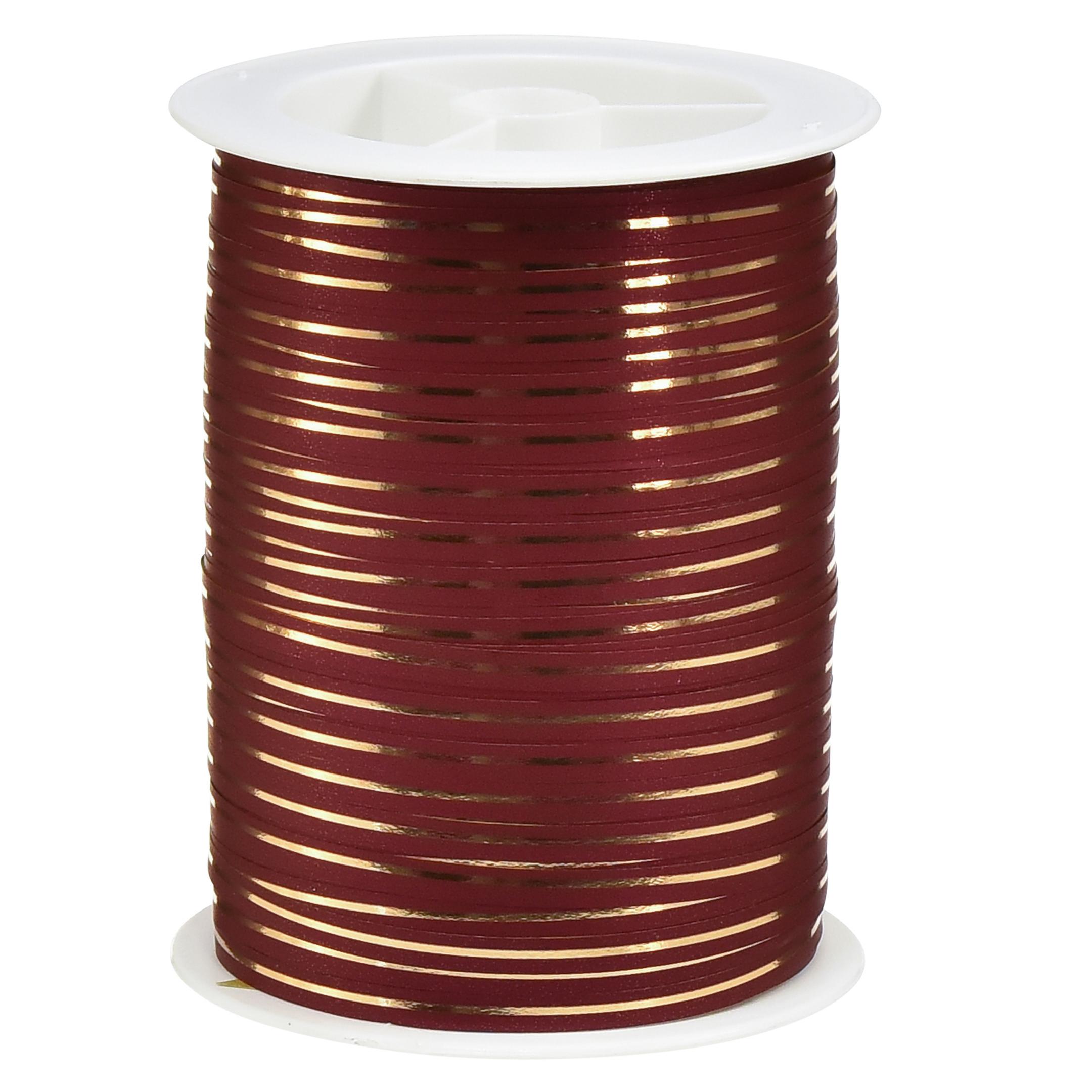 Suchen Sie nach dem perfekten Geschenkband, um Geschenken den letzten Schliff zu verleihen? Mit unserem Kräuselband in Bordeaux-Rot mit Goldstreifen geben Sie Ihren Präsenten einen Hauch von Eleganz und Stil. Das dunkelrote Band mit glänzenden Goldstreifen eignet sich ideal für Geburtstage, Hochzeiten und andere festliche Anlässe.