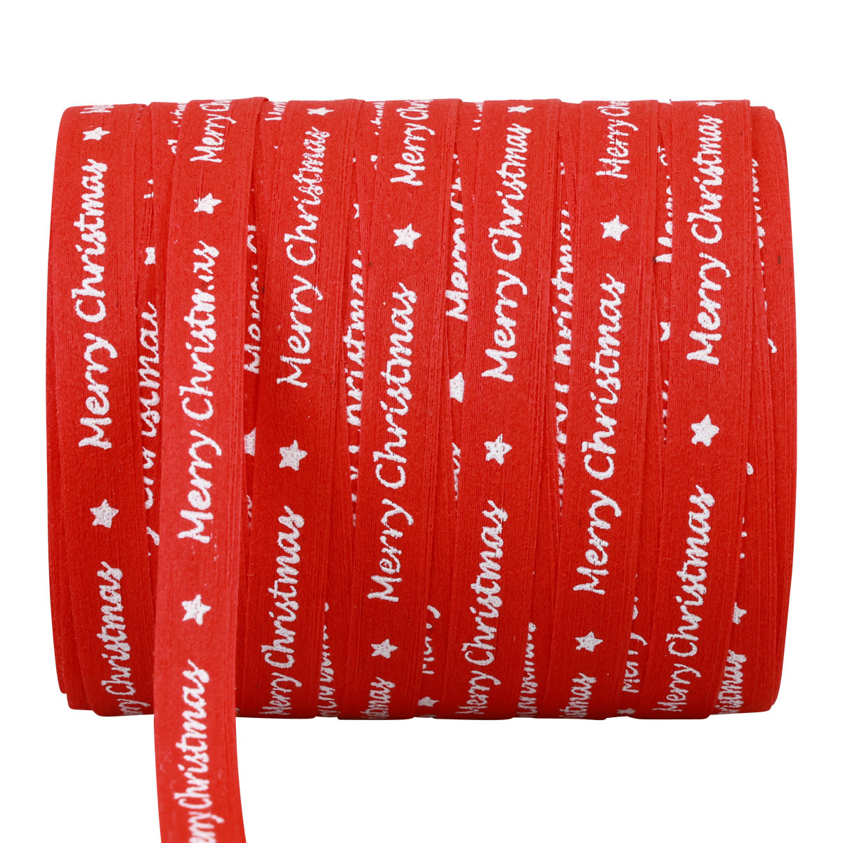 Produktname: Geschenkband Rot „Merry Christmas“ Baumwolle 10mm 100m