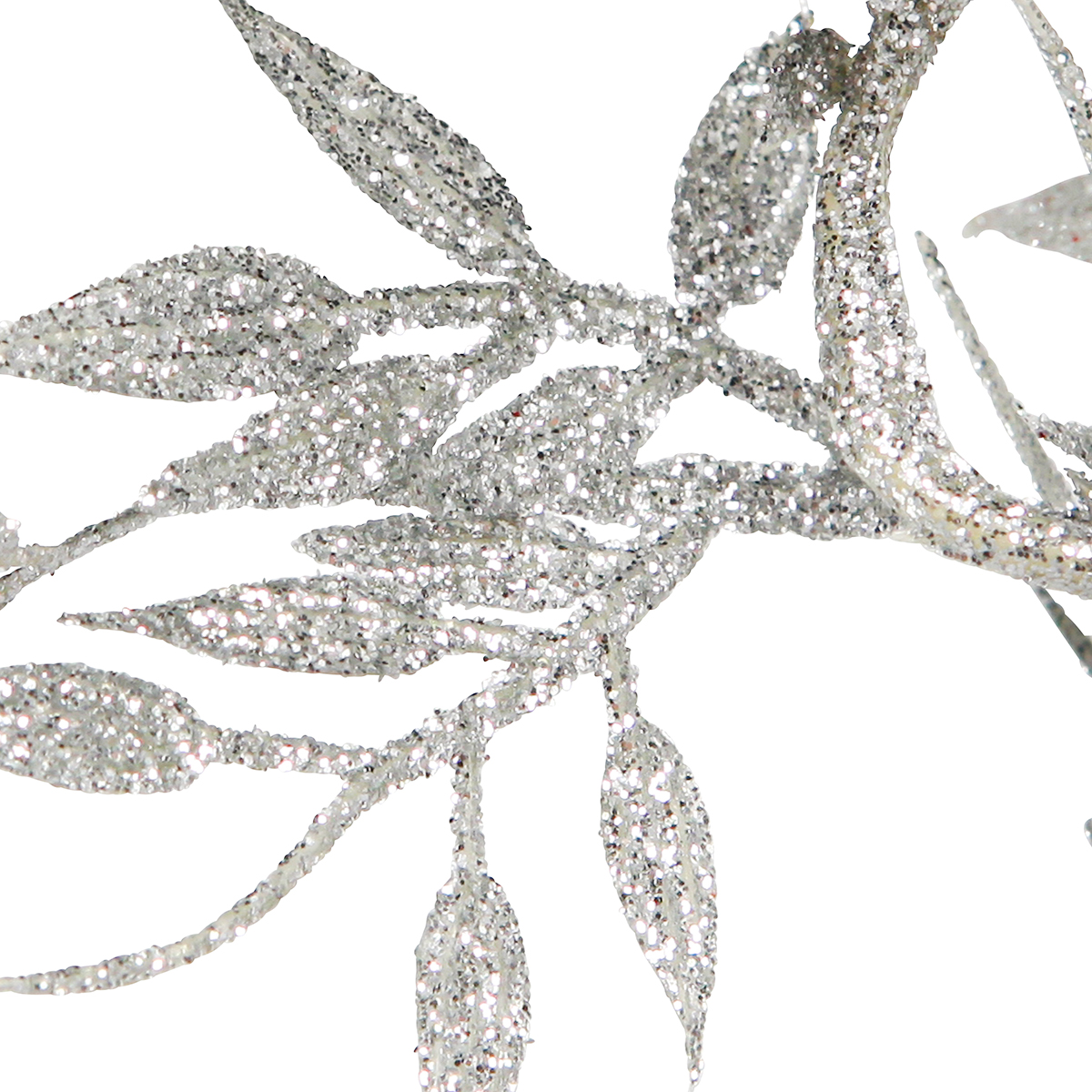 Die Detailverliebtheit zeigt sich in den fein ausgearbeiteten Blättern, die mit Silberglitter veredelt sind. Ein Hingucker, der bei Events und Partys, als Schaufensterdeko oder Hochzeitsdeko nicht fehlen darf. Platzieren Sie unsere glitzernde Hängedekoration über dem Türrahmen, gestalten Sie stilvoll Ihren Fensterrahmen oder setzen Sie elegante Akzente an Ihrer Wand.