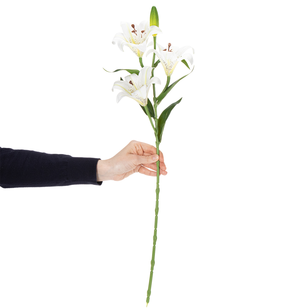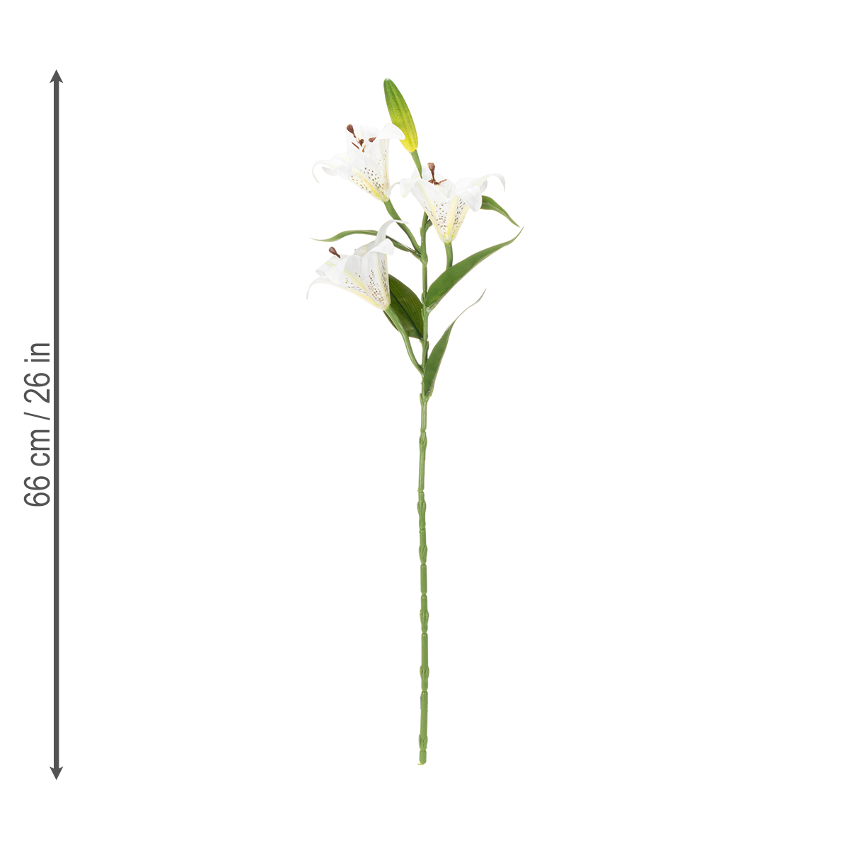 Diese hochwertigen künstlichen Lilienblumen überzeugen mit ihrem realistisches Design und ihrer subtilen Ausstrahlung. Sie eignen sich wunderbar, um minimalistisch eingerichtete Wohnzimmer zu akzentuieren, wirken aber ebenso überzeugend im Kontext eines romantischen Landhausstils. Mit einer Höhe von 66 cm lassen sich die Blumen sowohl in Vasen als auch in größere Gestecke integrieren. Das Material aus Polyester und Kunststoff sorgt für eine natürliche Optik und eine angenehme Haptik.