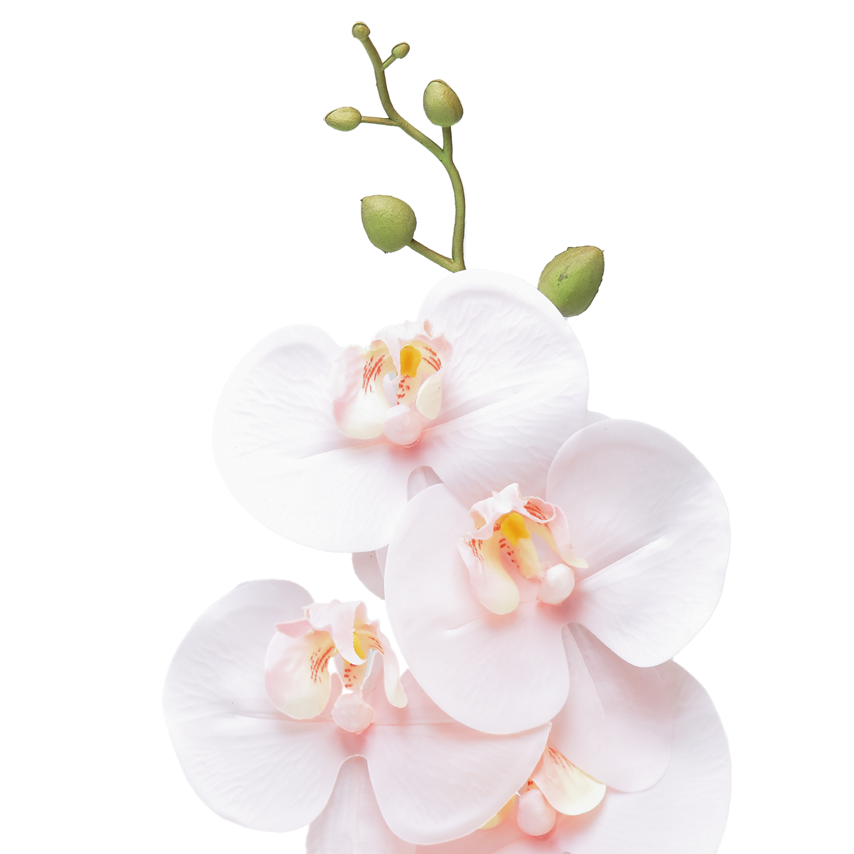 Mit ihren gut 83 Zentimetern ist sie ein echter Hingucker. Die Kunstblume ist einer Phalaenopsis nachgeahmt und somit einer Nachtfalterorchidee. Diese zeichnen sich durch ihre großen Blüten aus, die die Optik von flatternden Faltern haben.