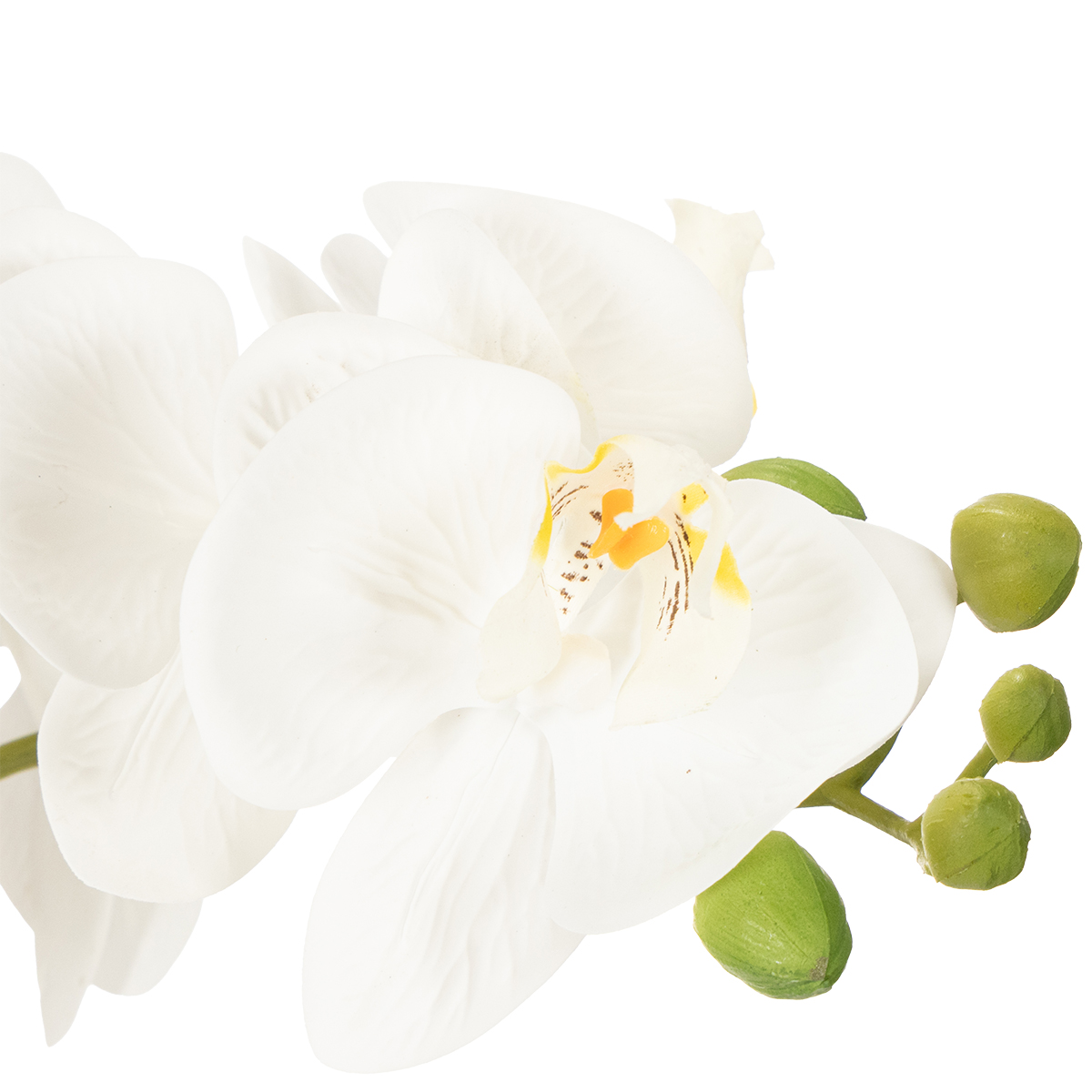 Was macht diese Orchidee zu einer so beliebten Wahl? Sie vereint anspruchslose Pflege mit der optischen Wirkung einer echten Pflanze. Ganz gleich, ob Sie einen modernen Skandi-Look, ein elegantes Glamour-Interieur oder ein minimalistisches Ambiente bevorzugen – die weiße Orchidee fügt sich harmonisch ein. Besonders schön wirkt sie in Kombination mit goldfarbenen oder gläsernen Vasen und Accessoires. Verleihen Sie Ihrem Zuhause oder Arbeitsplatz eine einladende Atmosphäre, die zum Verweilen einlädt.