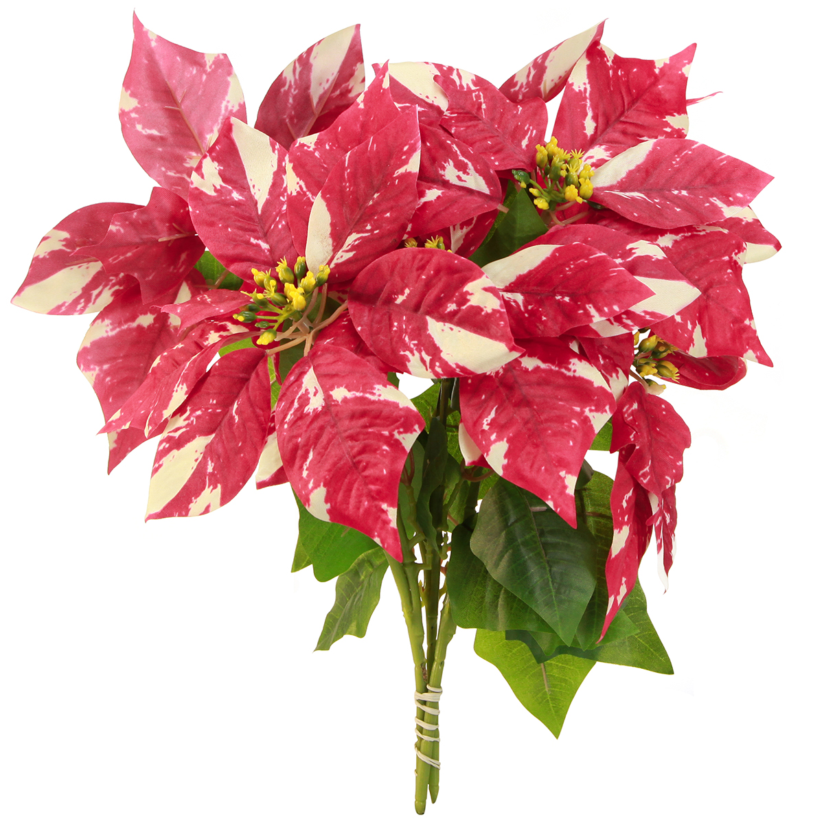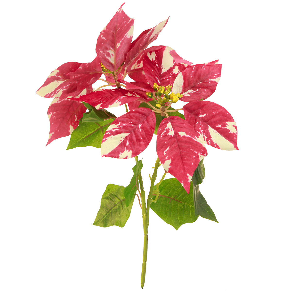 Mit viel Liebe zum Detail gefertigt, überzeugen unsere Kunstpflanzen durch ihre lebensechte Optik. Jedes Stück präsentiert sich als Christstern mit rot-cremefarbenen und grünen Blättern – ein Fest für die Augen. Die Zweige sind geschmackvoll gegabelt und tragen jeweils eine Poinsettie, sodass sich das Gesamtbild eines Straußes ergibt – ideal für eine elegante Tischdeko zu Weihnachten.