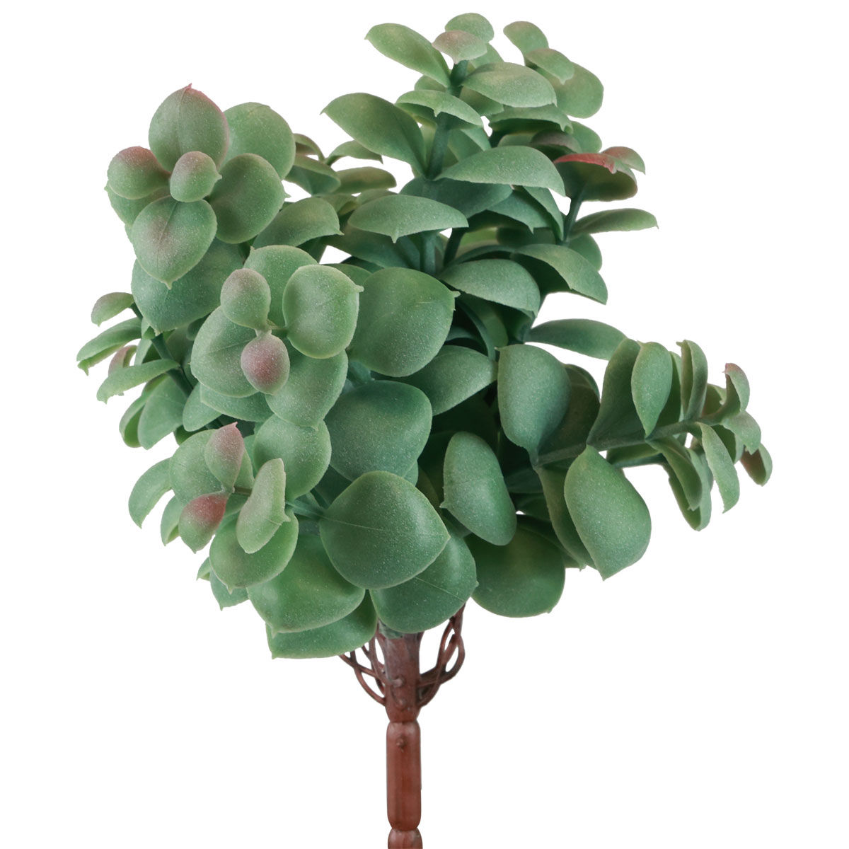 Die unterschiedlich großen Blätter sind präzise ausgeformt und in delikat nuanciertem Grün gefärbt. Die zartrosa Spitzen der künstlichen Grünpflanzen machen die Illusion eines echten Eukalyptuszweiges komplett. Am braunen Pick können die Kunstpflanzen angedrahtet oder gesteckt werden.