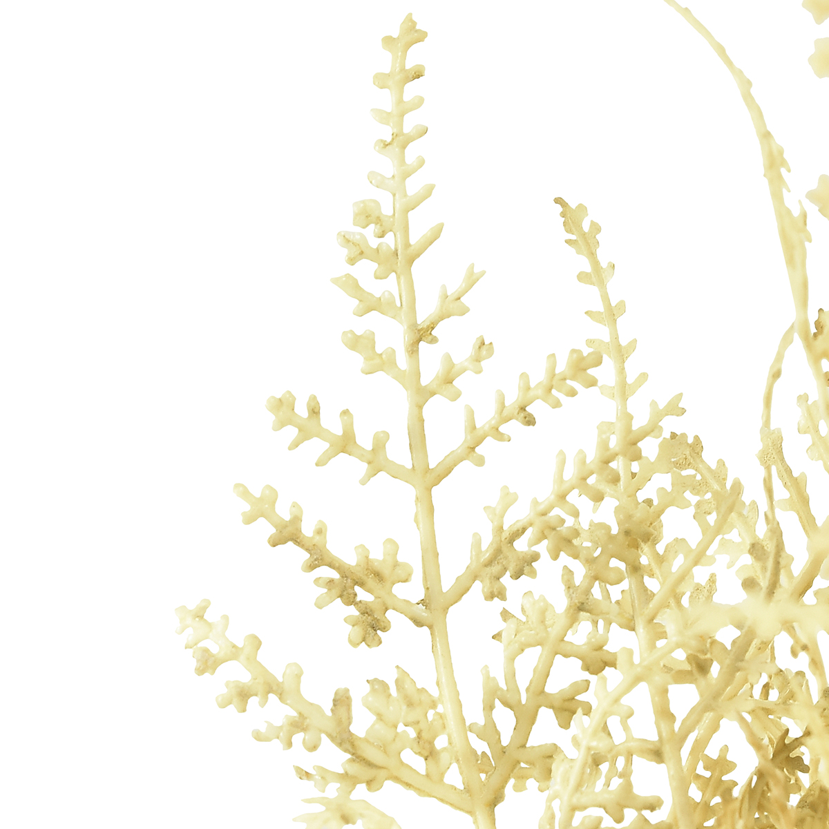 Verleihen Sie Ihrem Wohnbereich einen Hauch von Eleganz und Natürlichkeit mit unserem künstlichen Farn in gebleichter Optik. Die zarte, elfenbeinfarbene Textur der Blätter ergänzt harmonisch den angesagten Boho-Stil und schafft eine warme, einladende Atmosphäre. Jedes Bund enthält 6 detailgetreu nachgebildete Stiele, die liebevoll arrangiert sind und eine Länge von etwa 34 Zentimetern aufweisen.