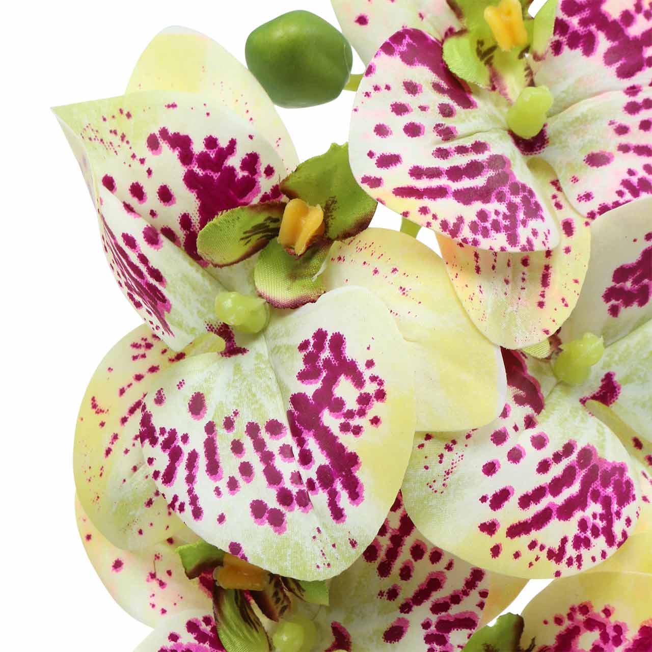 Produktname: Künstlicher Orchideenzweig Phaelaenopsis Grün Pink H49cm
