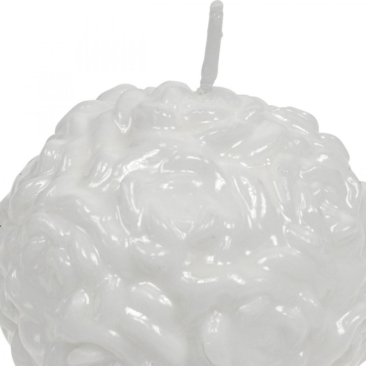 Kugelkerze Rosen Runde Kerze Weiß Kerzendeko Ø7cm