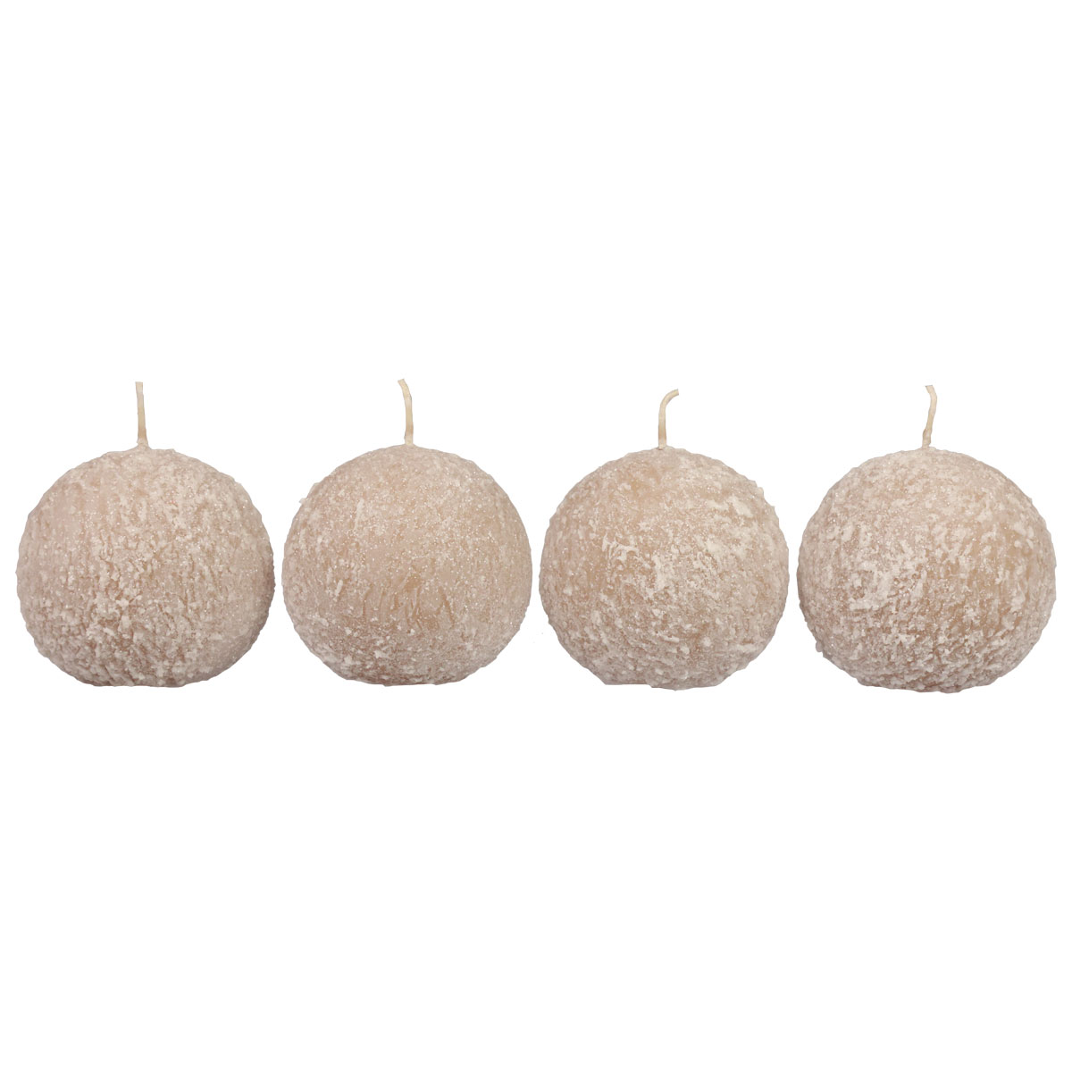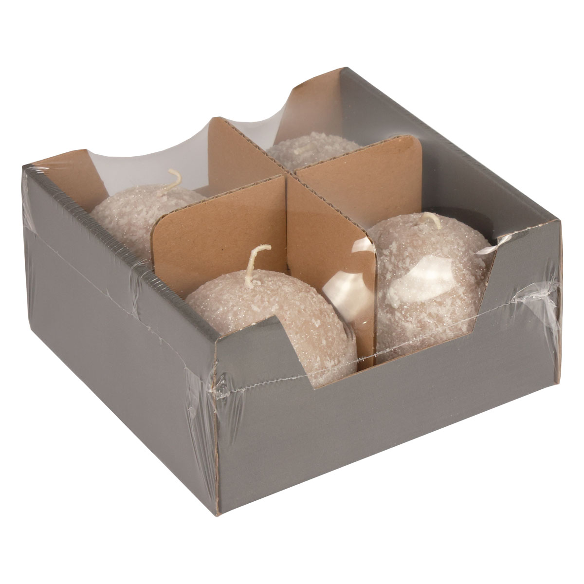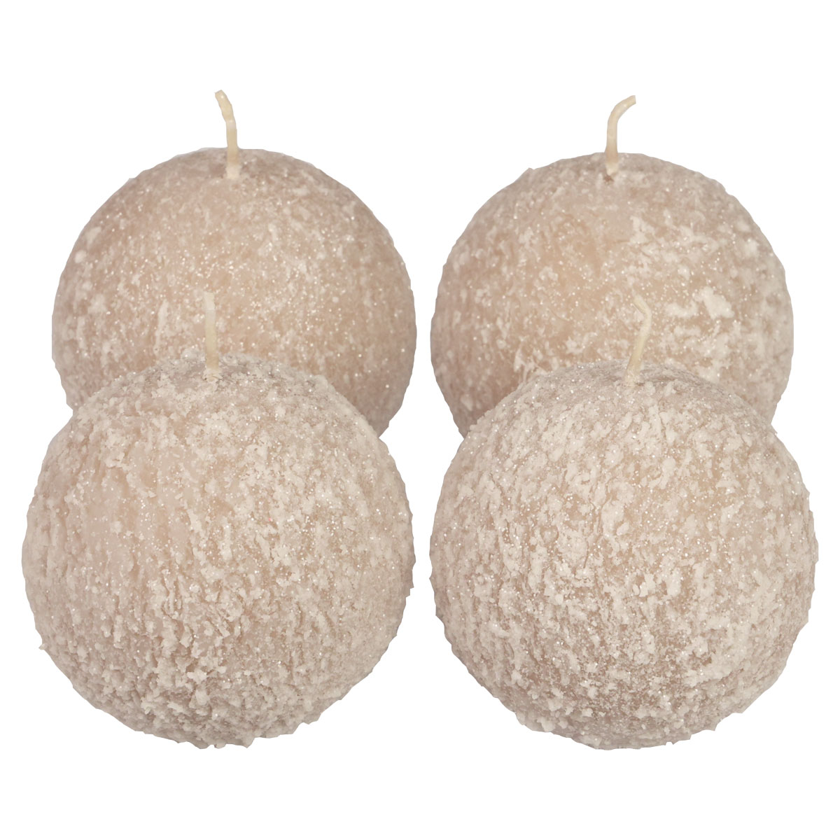 Kugelkerzen 8 cm Runde Kerzen Beige Schneeball Glitter 4St