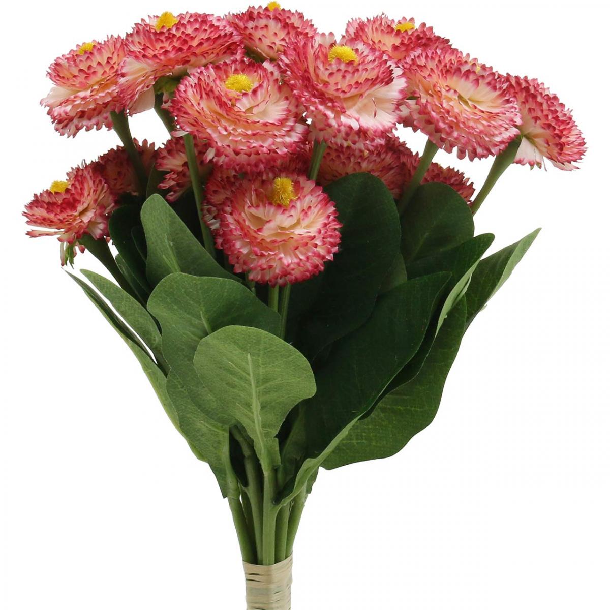 Kunstblume, künstliche Bellis im Bund, Gänseblümchen Weiß-Pink L32cm 10 St