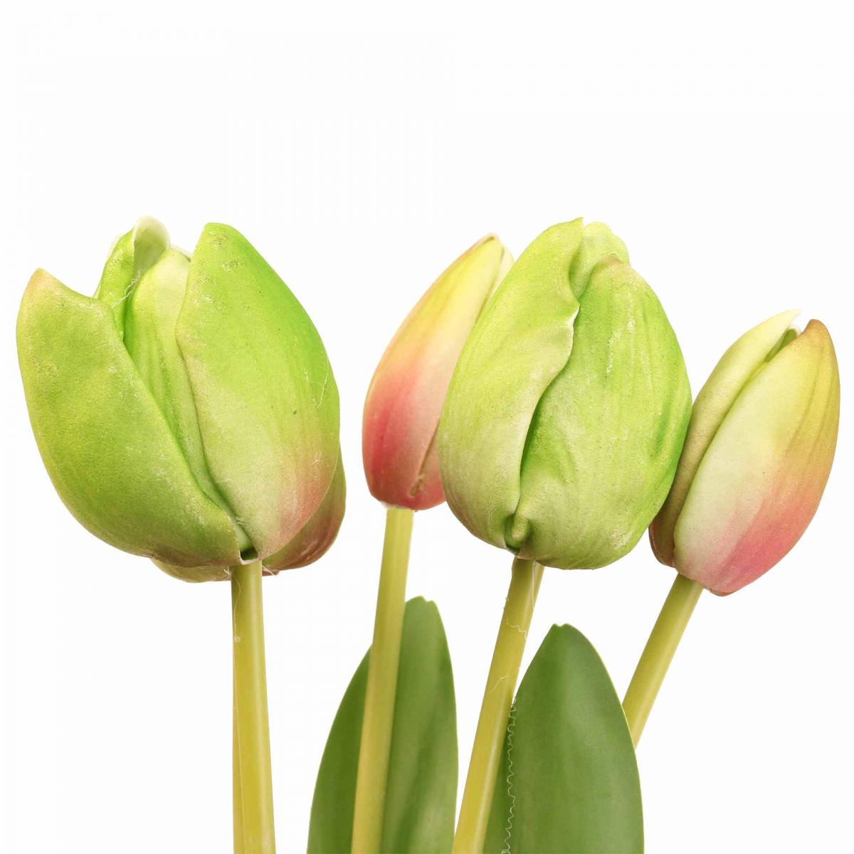 Kunstblumen Tulpe Grün, Frühlingsblume 48cm 5er-Bund