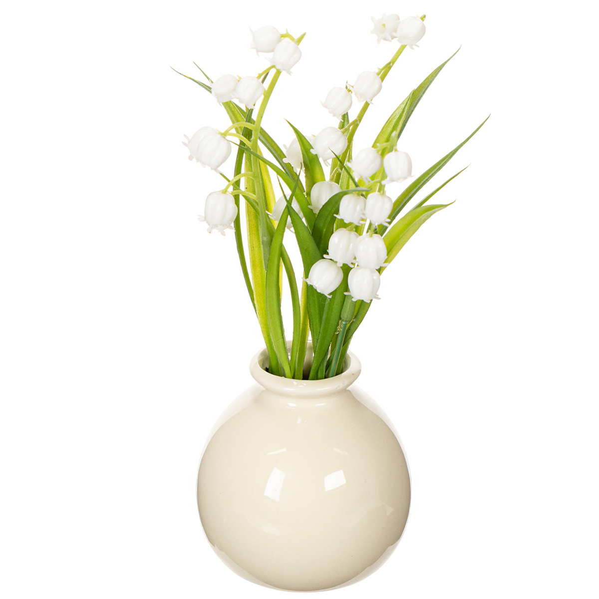 Kunstblumenstrauß Maiglöckchen in klassischer Vase ideal für Wohnraumdeko 20cm