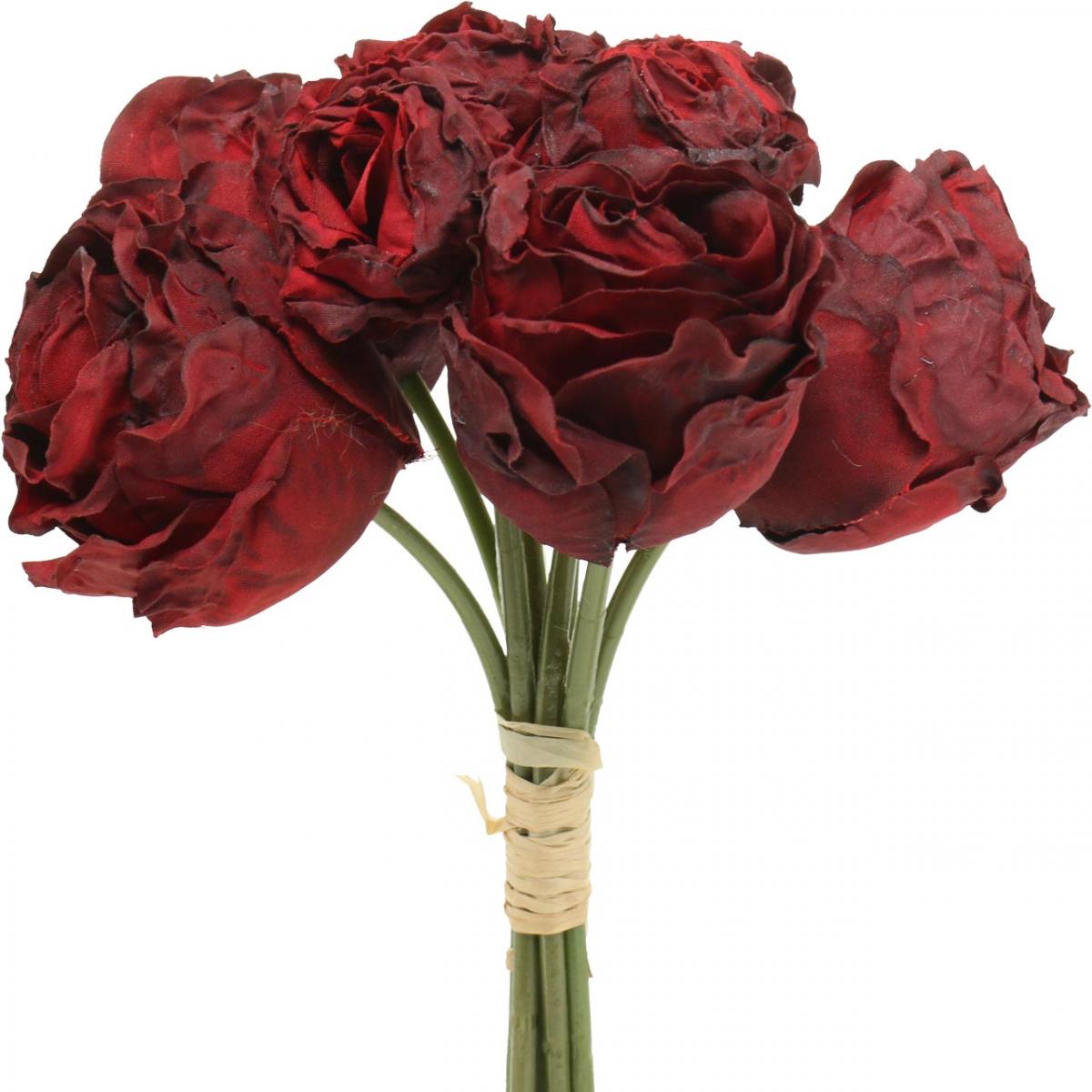 Produktname: Kunstrosen Rot, Seidenblumen, Rosenbund L23cm 8 St