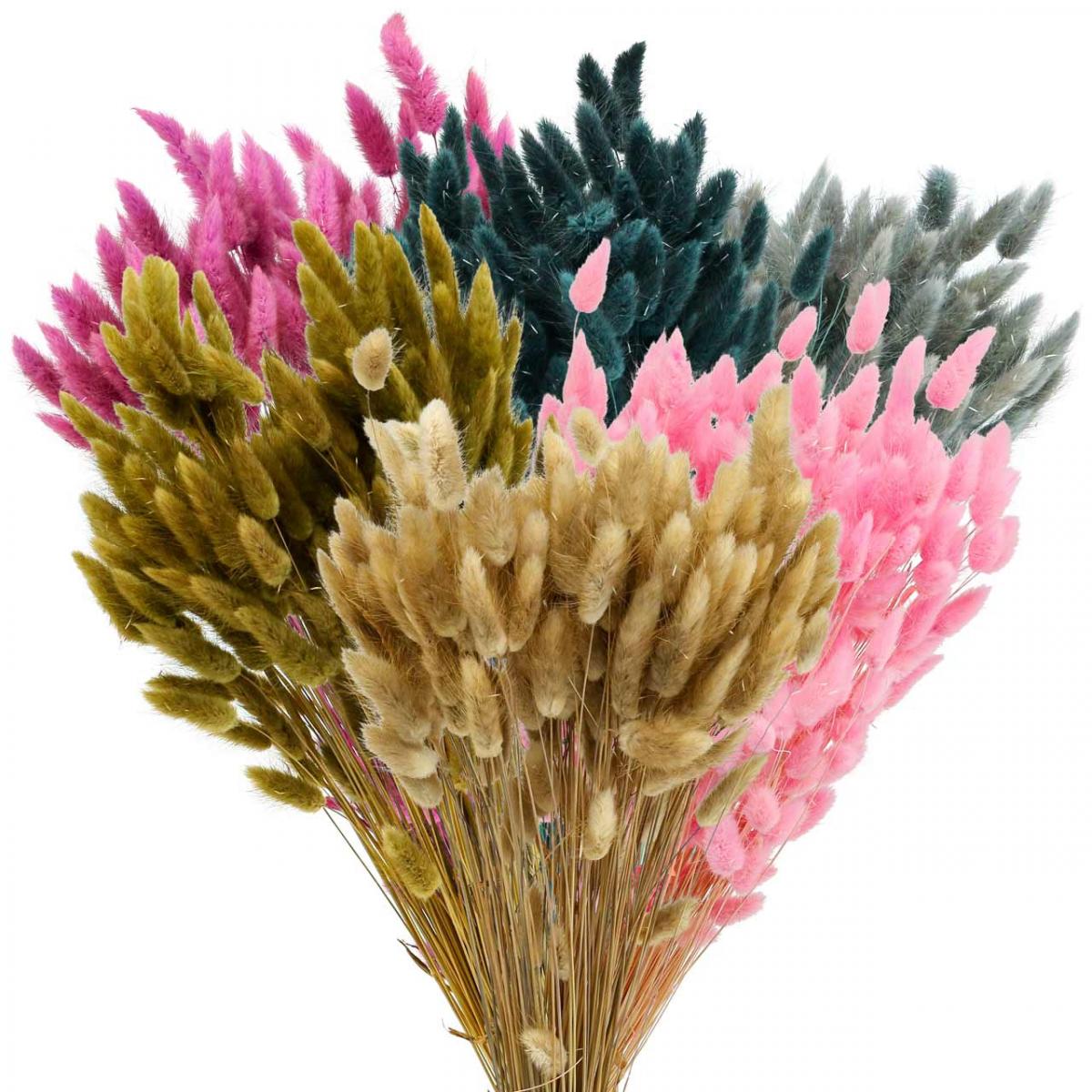 Lagurus zählt getrocknet und gefärbt zu den begehrtesten Trockengräsern in der Floristik. Das Süßgras, das ursprünglich in warmen Gebieten wie dem Mittelmeerraum zuhause ist, fand ebenso schnell den Weg in Trockenblumensträuße auf der ganzen Welt.