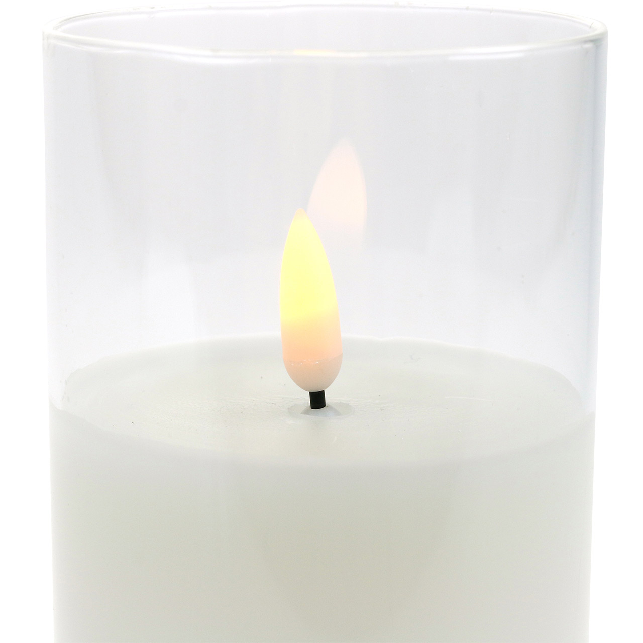 LED-Kerze im Glas Echtwachs Weiß Ø7,5cm H10cm