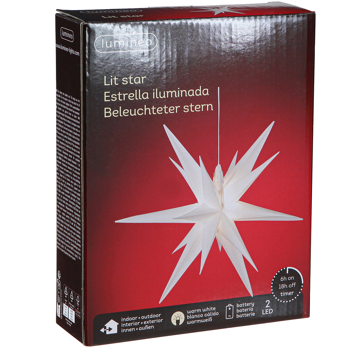 Produktname: LED Stern 3D Weiß Timer Batterie Außen Ø30cm H74cm
