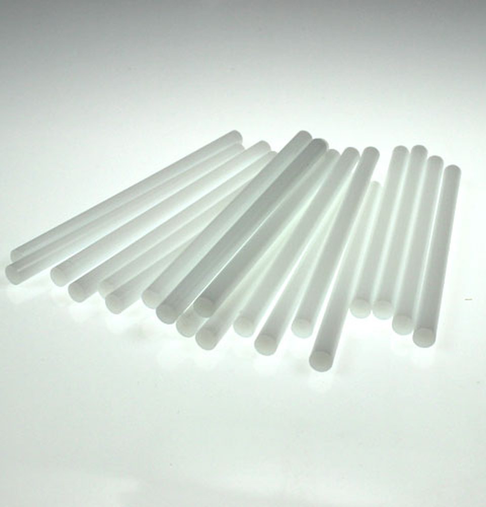 Heißkleber: Thermoplastische Klebstoffsticks (z. B. EVA, Polyamid, Polyolefin).