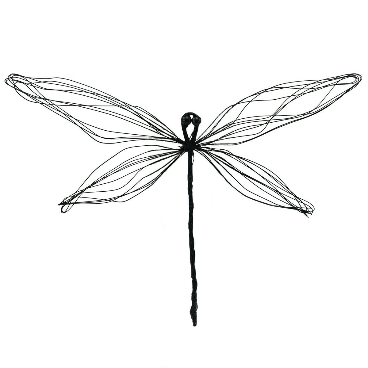 Die vielen kleinen feinen Drahtlinien in den Flügeln erinnern an die hauchfeinen Linien, die sich auch bei echten Insekten zeigen und lassen die Metall-Libelle noch detailreicher erscheinen.
