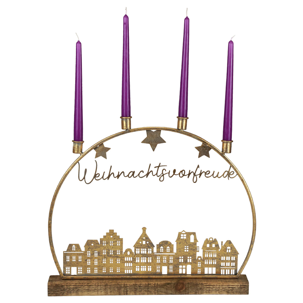 Lichterbogen Metall Holz Deko Stadtsilhouette Gold H43cm