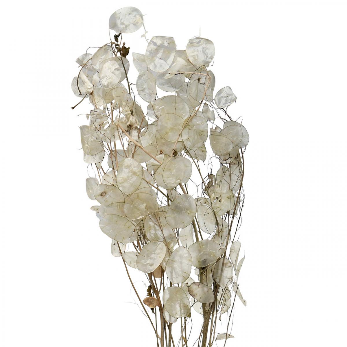 Wenn Sie das Silberblatt Lunaria getrocknet kaufen, bekommen Sie mehrere Zweige der Trockendeko im Bund zu einem Nettogewicht von circa 30 Gramm in Blumenfolie.