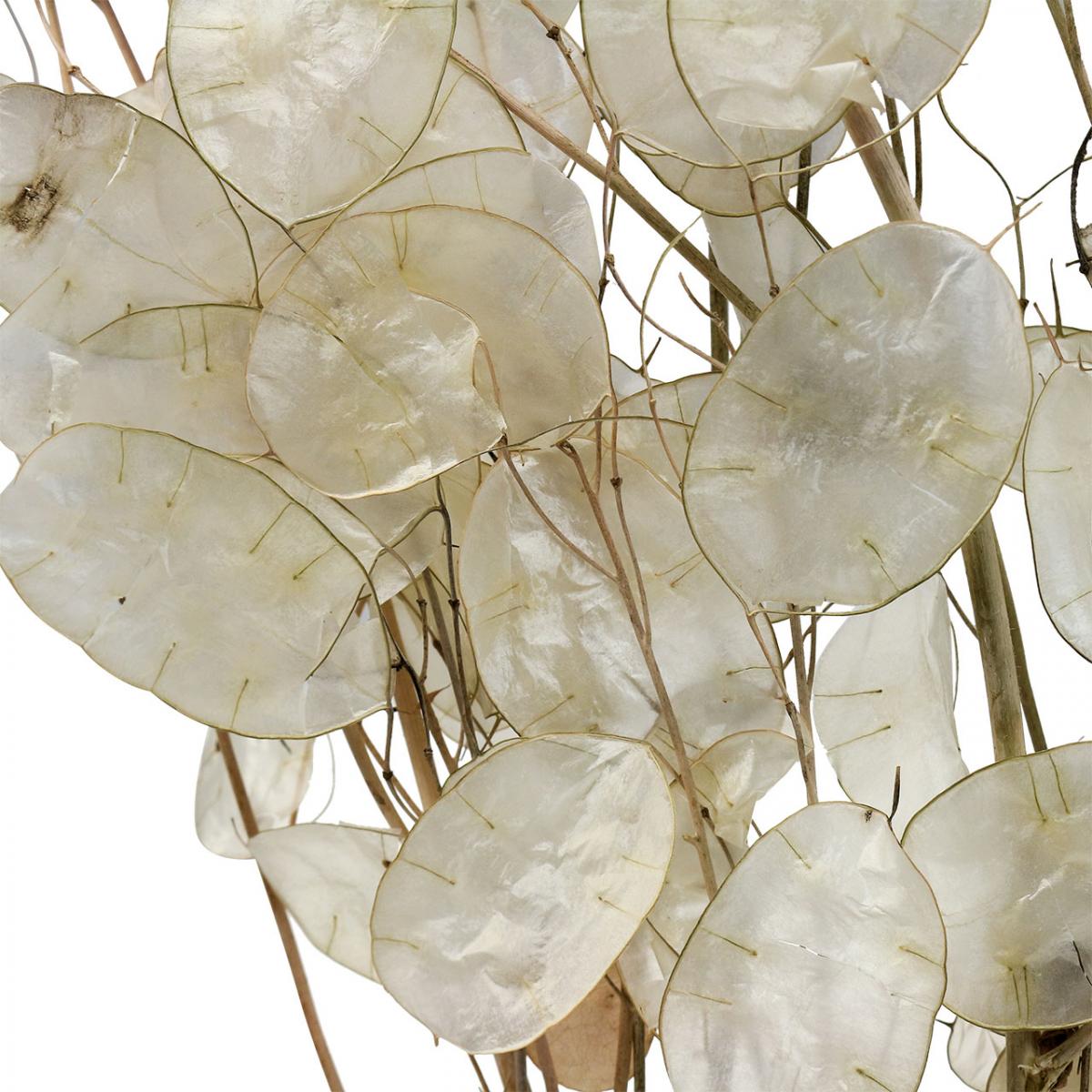 Das Silberblatt in getrockneter Form bezaubert durch seine zahlreichen Samenkapseln, die zauberhaft irisierend schimmern. Die blattartigen Kapseln der Lunaria annua, auch unter dem Namen Judaspfennig oder ausdauerndes Silberblatt bekannt, verbleiben im Winter am Zweig. Deshalb passt die schöne Silberblatt-Deko besonders gut in Trockenfloristik für den Herbst oder als winterliche Adventsdeko.