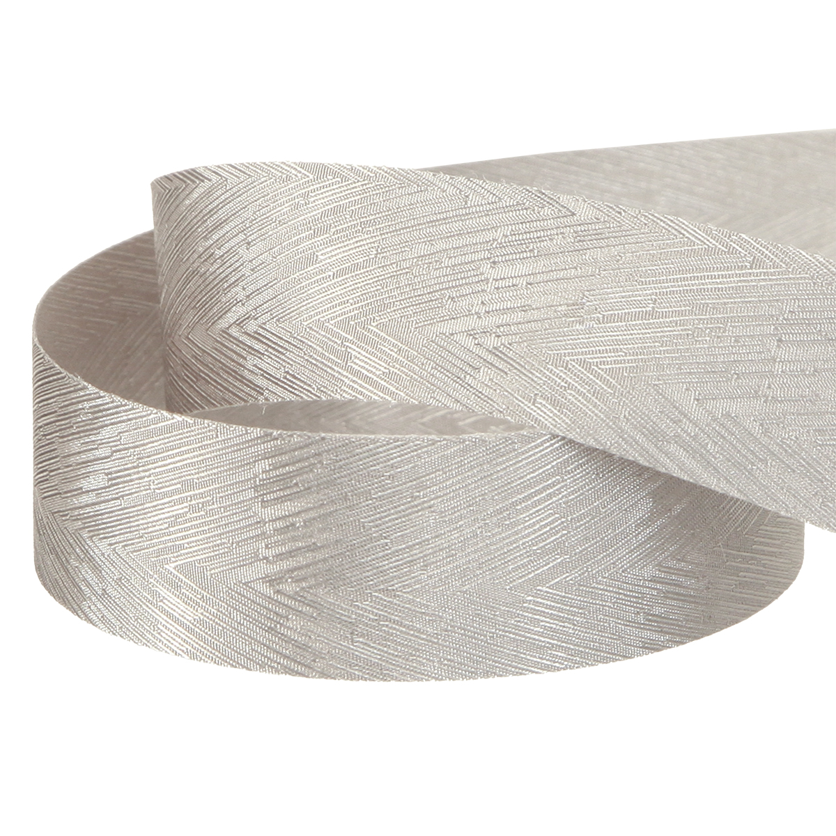 Produktname: Luxuriöses silbernes Seidenband mit elegantem Federdesign – Ideal für Hochzeiten und festliche Anlässe Breit 25mm Länge 15m