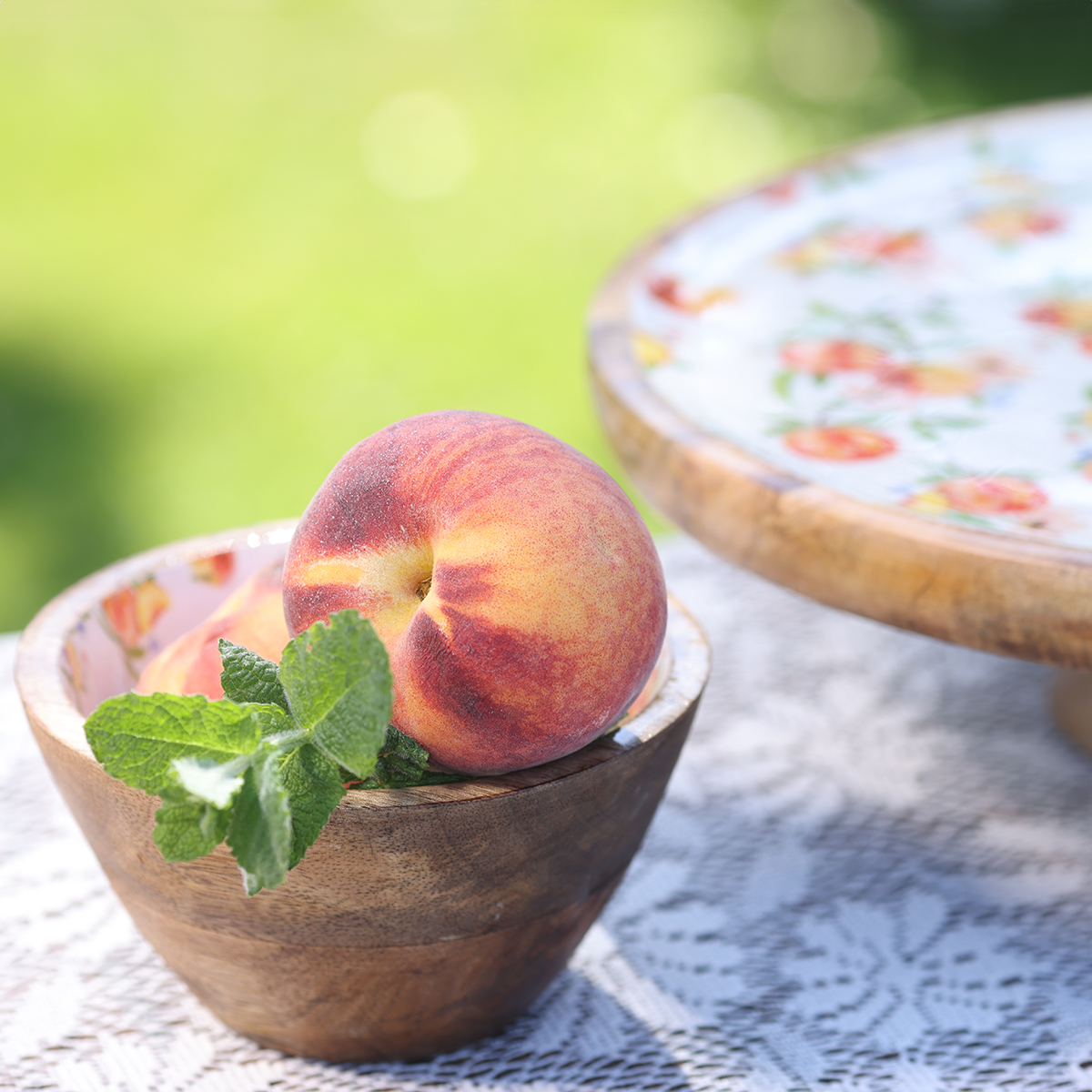 - Innen sommerliches Pfirsich-Motiv, außen unbehandelt