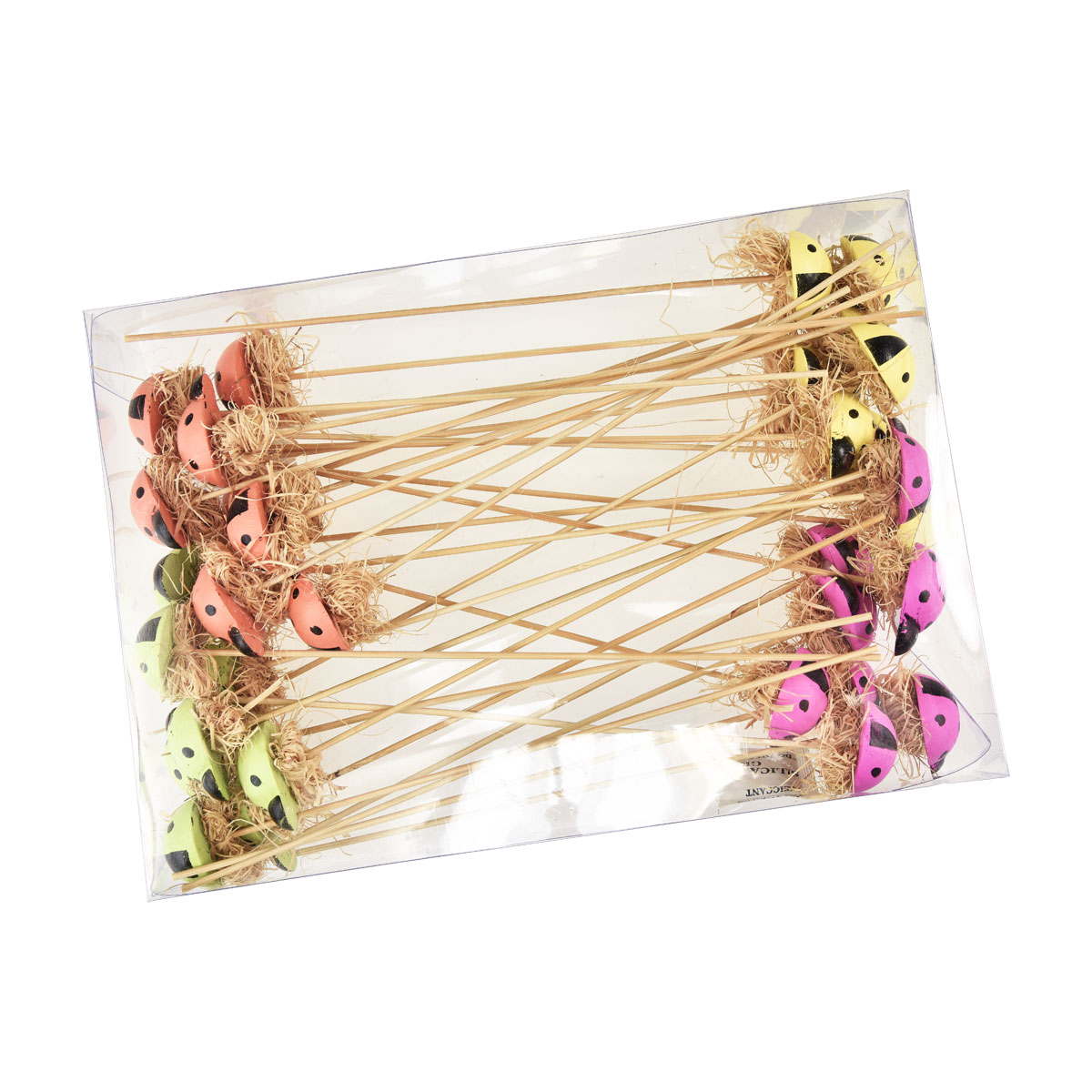 Sie erhalten die Blumenstecker aus Holz mit Marienkäfer-Deko zu 32 Stück, in 4 verschiedenen Farben sortiert. Bringen Sie mit diesen Dekosteckern Frühling und Sommer in Ihre Gestecke!