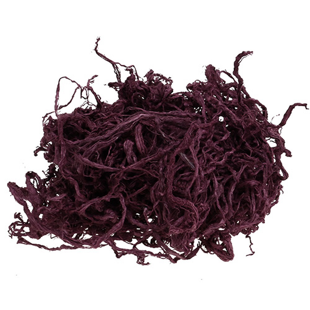 Die auberginefarbene Maulbeerbaumwatte wird Ihnen in einer Verpackung aus Kunststoff geliefert, wobei etwa 150 Gramm des Materials vorhanden sind.