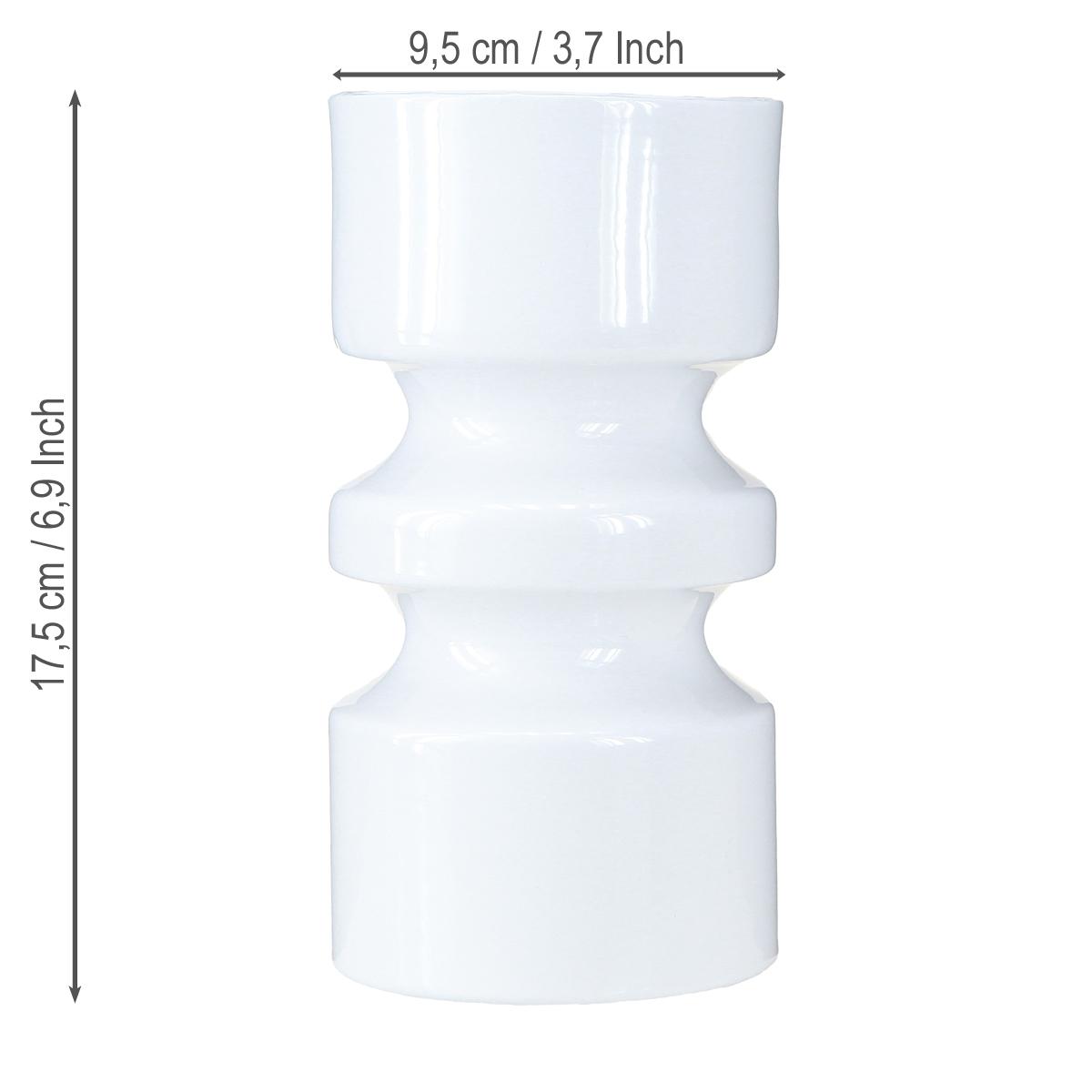 Unsere Metall-Blumenvase in Creme-Weiß mit Emaille ist die perfekte Ergänzung für Ihr Zuhause. Diese stilvolle Vase besticht nicht nur durch ihre edle Optik, sondern auch durch ihre vielseitigen Einsatzmöglichkeiten. Die cremeweiße Emaille-Beschichtung verleiht der Vase einen modernen und gleichzeitig klassischen Charme, der sich ideal in verschiedene Wohnstile wie Landhaus, Shabby oder Scandi integrieren lässt. Durch die Zylinderform und ihre dekorativen Rundungen wird sie zum Highlight Ihrer Raumgestaltung. Ob auf dem Esstisch als sommerliche oder frühlingshafte Tischdeko oder als Hochzeitsdekoration: Diese Blumenvase aus Metall ist ein wahrer Hingucker.