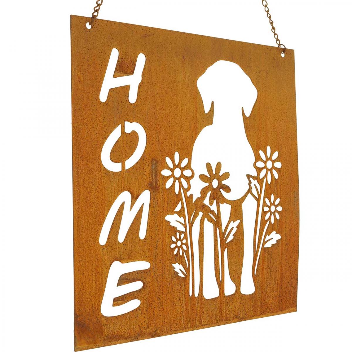 Die beiden Metall-Deko-Schilder im Set mit der stilvollen Patina aus Edelrost sind bereits mit Kette und Haken ausgestattet. An dem Haken können Sie die Edelrost-Dekoschilder aufhängen. Verzieren Sie mit den Home-Dekoschildern Ihre Tür oder das Tor. Für Hunde- und Katzen-Freunde sind die Metallschilder ein passendes Accessoire und auch für Retro-Fans und Vintage-Liebhaber ein schönes Schmuckstück fürs Heim.