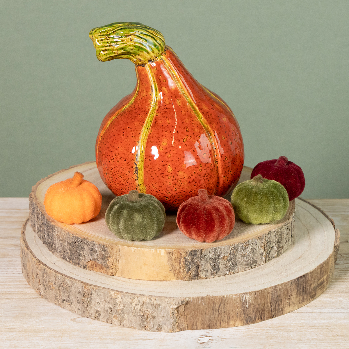 Verleihen Sie Ihrem Zuhause einen Hauch von variantenreicher Herbstdeko mit unseren beflockten Mini Kürbissen. Sie sind nicht nur optisch ein Highlight, sondern bieten auch vielseitige Dekorationsmöglichkeiten, die DIY-Enthusiasten und Hobbybastler begeistern werden. Von einer klassischen Herbsttischdekoration bis zu modernen Wohnzimmerdekoren im Skandi-Stil, dank ihrer samtigen Stoff-Oberfläche und Farbvielfalt lassen sie sich in jedem Ambiente ansprechend in Szene setzen.