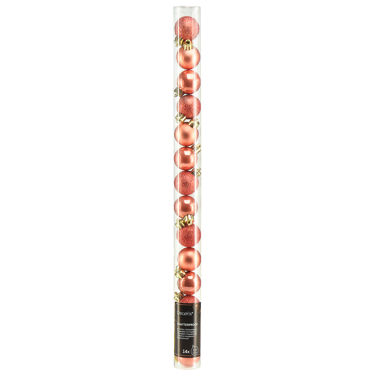 Produktname: Mini Weihnachtsbaumkugeln Orange Bruchfest Ø3cm 14St
